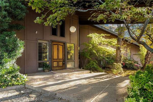 This stunning mid-century modern home is a true showstopper--an architectural gem that perfectly blends iconic design with the natural beauty surrounding it. Soaring floor-to-ceiling windows in every room invite the outdoors in, offering breathtaking views of the Gunite pool, seasonal creek, and majestic oaks. Every angle captures light, texture, and the peaceful rhythm of nature.