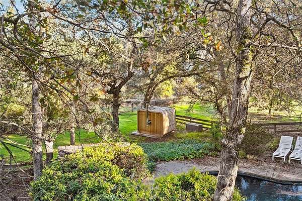 Outdoors, the magic continues. Meandering paths reveal colorful gardens, bubbling fountains, gazebos, and secluded seating areas that change beautifully with the seasons. A large cedar sauna overlooking the creek provides the ultimate space to unwind while listening to the gentle sounds of flowing water and rustling leaves--a private wellness retreat right at home.