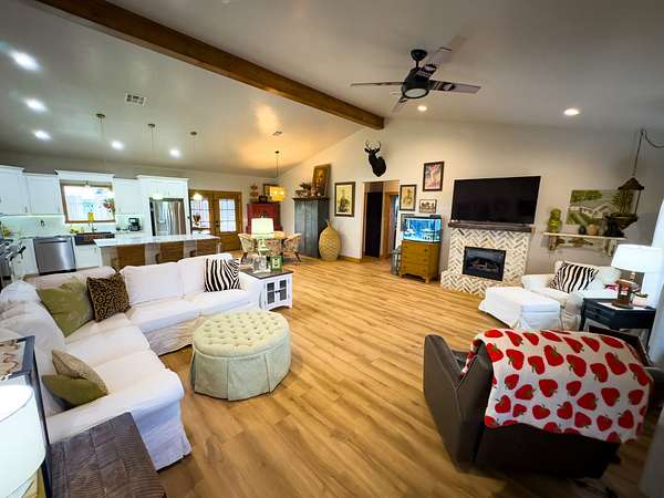 PRICE REDUCED!! Introducing the Hilltop Okemah Ranch, located in Okfuskee County, Oklahoma! This 80.5+/-acre ranch offers the perfect blend of comfortable living and functional land for cattle, recreation, or multi-use homesteading. At the heart of the property sits a beautiful 3-bedroom, 2-bathroom, 2,200+/-sq ft home featuring a spacious kitchen with granite countertops, a walk-in pantry with built-in electrical and butcher block countertops, and a large open living area. Step outside to enjoy a 40-foot covered patio and a 30-foot pool--ideal for relaxing and entertaining. A long, fenced driveway leads to the main home and its fenced yard, offering privacy and a clean, organized layout. Nearby, you'll find a 24' x 12' insulated shed with liners, and a 40' x 40' shop with a 20-foot lean-to--both perfect for storage, equipment, or hobby use. In the southeast corner of the property sits a second residence: a 1-bedroom, 1-bathroom home with a newly installed professional mini-split system and a new dishwasher. It also features its own fenced yard and driveway, offering a great space for guests, family, or rental potential. The land itself is cross-fenced and ideal for running cattle or other livestock, with one pond and two wet weather creeks providing water for animals and habitat for wildlife. Deer, dove, ducks, and small game are common on the property, adding recreational appeal to this versatile tract. Conveniently located just 35+/-minutes from Shawnee, 1 hour and 19+/-minutes from Tulsa, and 1 hour and 10+/-minutes from Oklahoma City, this ranch sits in a prime position between Oklahoma's major hubs while offering the peacefulness of rural living. This well-rounded ranch is move-in ready and offers the ideal combination of residential comfort, ranch functionality, and rural tranquility perfect for those seeking a ready-to-go operation in the heart of Oklahoma. Livestock and equipment are negotiable and able to be purchased. All showings are by appointment only. If you would like more information or would like to schedule a private viewing please contact Justin White at (918) 207-7521 .