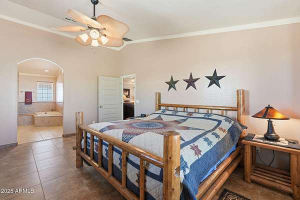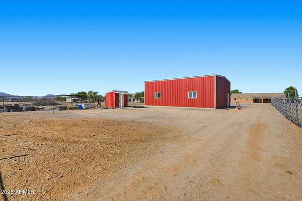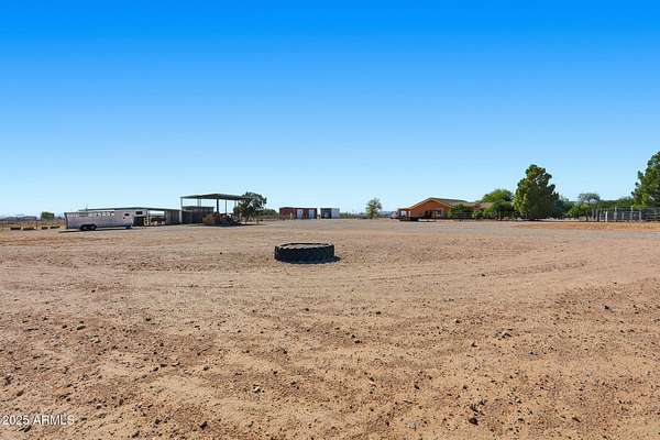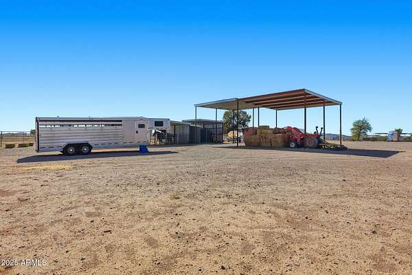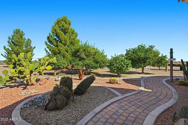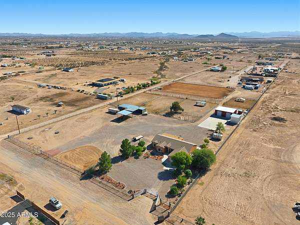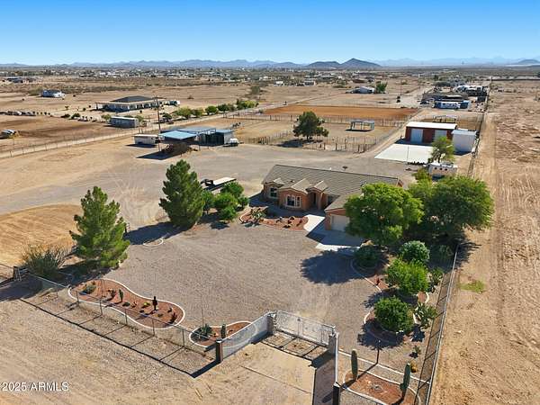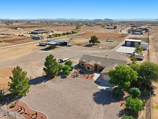 Proudly presenting this truly one of a kind property. This elite horse property is located on over 5 acres. You enter through a private gate, that leads you with a breathtaking front custom designed landscape. This front design combines the best of both worlds! You have matured, gorgeous fruit trees : Pink Grapefruit, White grapefruit, yellow limes, lemon, tangerines, oranges, black Olive trees along with Prickly Pear Cacti and large blooming barrel cactus as well! Property has auto water timers. Thoughtful rock / pavers that lead to the front entrance. Upon entry you will notice the attractive tile flooring that flows throughout the entire home. Step into this chefs kitchen that adorns custom large stone accents, and eat in dining room located by the sun lit bay window. Stainless appliances , walk in pantry with plenty of room for storage. The expansive living area is perfect for entertaining, and Sunday football gatherings. This lovely split floorpan offers privacy. The charming primary offers substantial space for King and Queen furnishings, upgraded tile shower , soaking tub, walk in closet and private toilet room. This impeccable home features all secondary, oversized bedrooms, each able to accommodate a king size bed. Laundry room is spacious and has built in sink with storage! Walk out the back door to an absolute horse owners dream. PRIVATE well, no sharing here! Absolute amazing water some of the best water is in the entire valley that comes from the Tonopah Hot Springs. Well produces 28 GPM! This unique property has a steel built workshop 220 V Box, literally built to withstand anything, includes 2 oversized RV/trailer garage doors. The Professionally built roping arena is a massive 241 X 171. The outstanding design has the following features : Steer pen, return alley, shoot, striping shoot, Shoot is made of 6" steel custom made header/healer boxes. Tie racks are also steel which are concreted in, the utmost safety for your Horses' . There is literally NO limit to what this incredible property has to offer. Professional roping income would be more than substantial !!! Please, see list of items that do not convey.