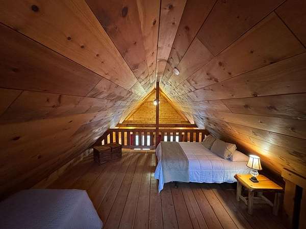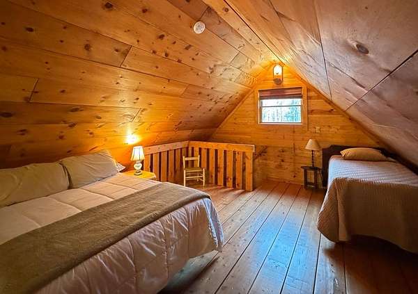 Discover the tranquility of the Northwoods, in this perfectly maintained 2 bed, 1 bath modern rustic A-frame cabin on 10 wooded acres backing up to the Nicolet National Forest. Thoughtfully designed with a two-bedroom plus loft layout, the cottage comfortably sleeps 8-10 guests. Perfect for family gatherings, weekend getaways, or extended stays in peaceful seclusion. The property features UTV & walking trails throughout. A Shadow Hunter Box blind, set on an elevated composite deck, provides a comfortable vantage point for hunting or simply enjoying wildlife. A 26' x 32' pole building offers ample space for storing UTVs, boats, & all your outdoor gear. Whether you're seeking a peaceful retreat, a base for adventure, or a place to gather with family & friends, this Northwoods property offers a rear combination of privacy, beauty, & comfort - all just minutes from the North Twin Lake boat landing & endless recreational opportunities. Home to be sold fully furnished.