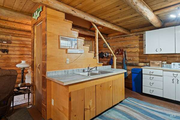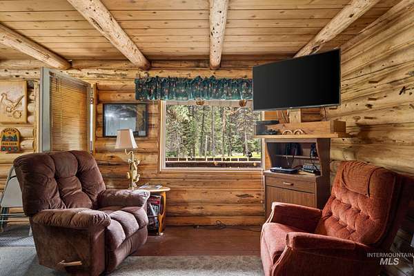Experience your own outdoor recreational retreat with this charming cabin! Recently expanded, this cabin seamlessly blends modern convenience with rustic charm, featuring a modern shower and 5 comfortable bedrooms, all while you relax in the inviting log living room and kitchen. Additional highlights include two electric water heaters, a free-standing gas range, and a cozy gas fireplace. Nestled on 7.88 well-timbered acres, you will enjoy the seasonal creek, a permanent wildlife viewing/hunting blind to take in the views of the beautiful landscape that attracts local wildlife, perfect for any sportsman. This property boasts a meat cooler for meat storage or extra refrigeration needs, shared well, and a covered breezeway to unwind. There's also a storage shed with lean-to's, covered space for your four-wheelers or other recreational toys. This is the perfect getaway for nature lovers!