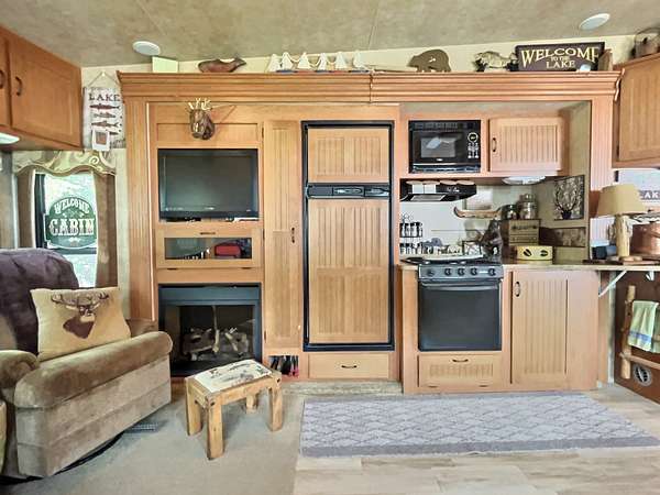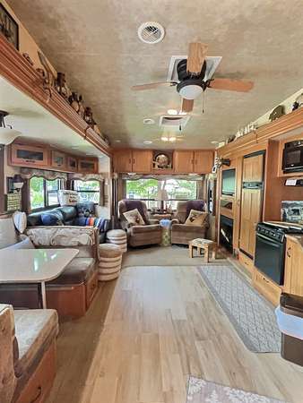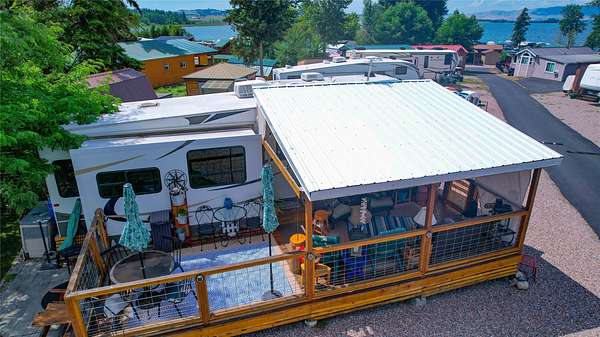 This deeded lot in Paradise Cove is perfectly positioned along the pristine shores of Flathead Lake, offering tranquility and direct access. The spacious lot features a deck and awning, yard space for entertaining, annd a large shed-ideal for added storage. Plenty of shade, and outdoor relaxation awaits. Enjoy a wide array of resort-style amenities, including a community boat dock with rental slips and community moorage space, generous beach access, swimming pool, playground, pickleball court, event pavilion, and secure boat storage. 2009 32.5Ft Durango 5th Wheel included in the sale/negotiable. Paradise Cove is open seasonally from April 15th to October 15th.