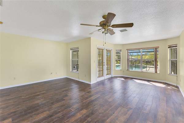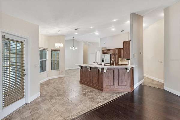 Step inside to discover a bright, open-concept layout filled with natural light. The chef's kitchen features stainless steel appliances, custom cabinetry, and a spacious island perfect for entertaining. Enjoy effortless indoor-outdoor living with large windows and direct access to the screened pool area, creating your very own private oasis.
