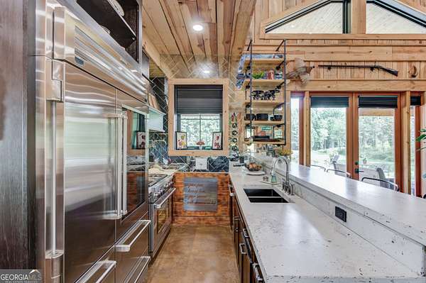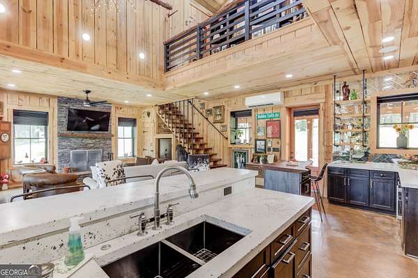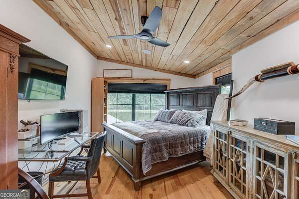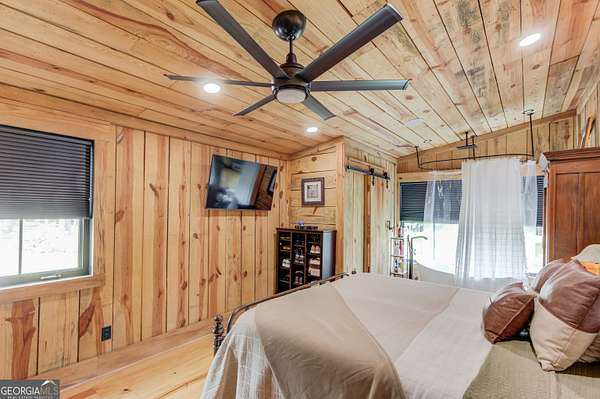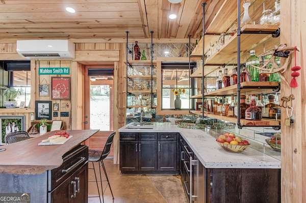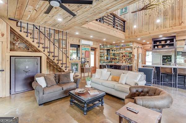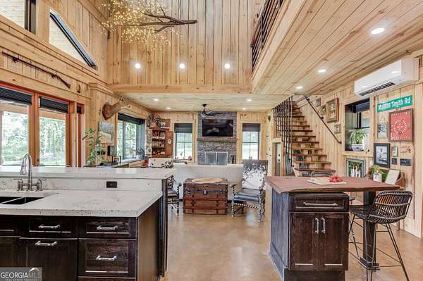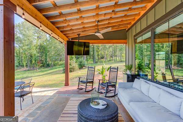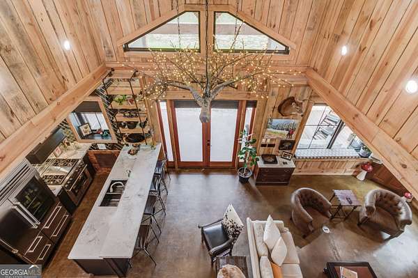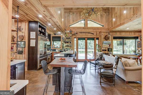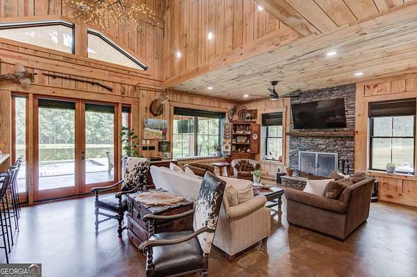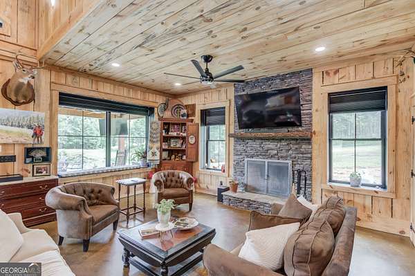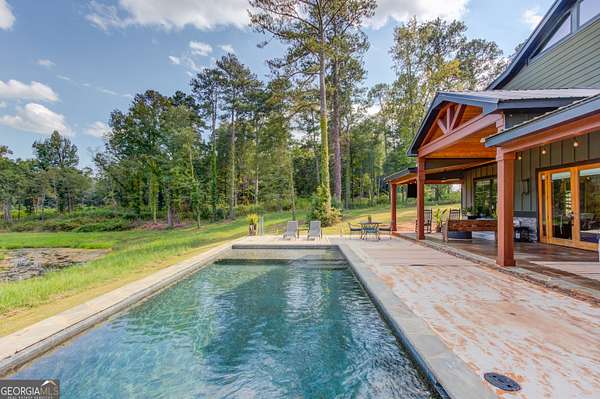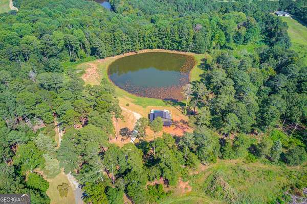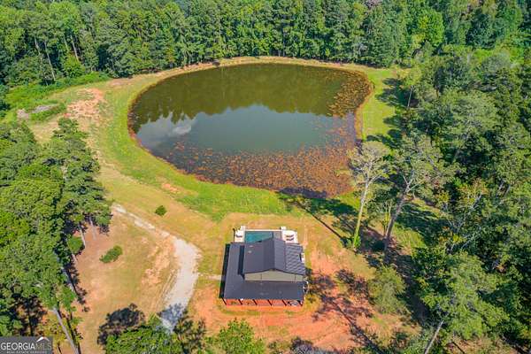 This hidden gem is tucked far off the road on 25 acres, offering complete privacy and tranquility. The property features a serene pond, open space for a large garden, animals, or your forever dream home. With enough road frontage for an additional two homes and a guest house, it's ideal for a family compound, investment property, or future development (with county approval). The custom-built cabin showcases beautiful craftsmanship by a local builder-featuring hardwood floors, built-in bookshelves, wood accents throughout, and a bar area perfect for entertaining Modern Comforts: Whole-house audio system with zones for the porches, kitchen, bedroom, and office/bedroom-expandable to the pool and future outdoor kitchen. App-controlled smart features for easy living. High-End Kitchen: Sub-Zero refrigerator Wolf stove, coffee maker & microwave Scotsman ice maker Outdoor Living: Gorgeous pool with plumbing & electrical in place for a future outdoor kitchen Gas lighting on the exterior for a warm evening glow. This property is full of unique features you won't find anywhere else-a true must-see!