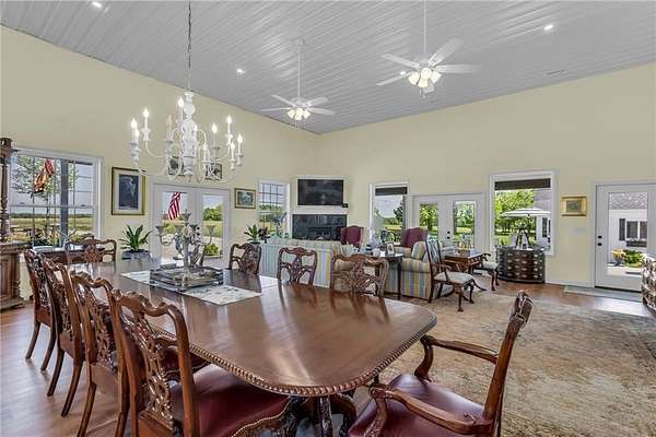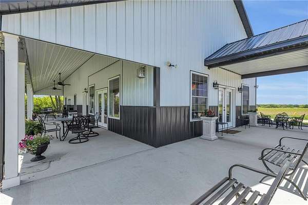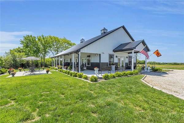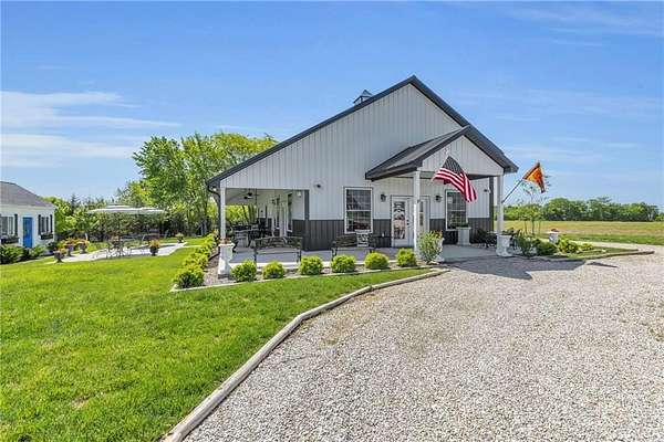 Nestled at the end of a long, private driveway, a meticulously crafted newer home awaits on a sprawling 80 +/- acre estate. This exceptional property offers a harmonious blend of productive income crop ground, mature timber, and grazing pasture, creating a haven of tranquility and natural beauty. Step inside to discover an inviting open-concept floor plan, where soaring ceilings and expansive windows bathe the interior in natural light while framing spectacular panoramic views of the surrounding countryside. The home features two generously sized bedrooms and a well-appointed full bathroom. The fabulous kitchen is a chef's delight, boasting an abundance of stylish cabinetry and elegant quartz countertops. The huge great room, complete with a cozy fireplace, flows seamlessly into a very large dining area, creating an ideal space for gatherings and entertaining. Imagine stepping out from the main living area onto a lovely patio, perfect for enjoying the peaceful surroundings. Adding to the charm is an adorable small outbuilding, offering endless possibilities as a she-shed, an entertainment bar, or a unique retreat. A convenient two-car detached garage provides ample space for vehicles/storage. This is more than just a home; it's an invitation to embrace a lifestyle of privacy and serenity, a world away from the hustle and bustle of city life. Would also be perfect for a getaway! Entertain at your home, then jump into your golf car or UTV and tour the different wineries in the area, go fishing at the State Lake or adventure the beautiful countryside. Move in and immediately begin to enjoy the incredible peace and beauty this remarkable property affords. Don't miss out on this opportunity!