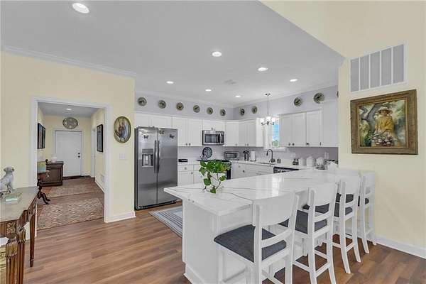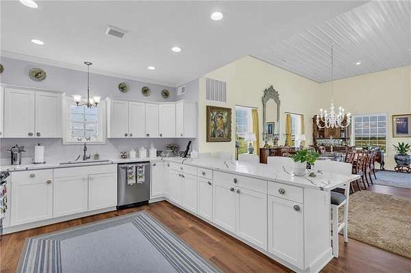 - Ceiling Fan(s), Custom Cabinets, Kitchen Island, Painted Cabinets, Pantry, Vaulted Ceiling(s)