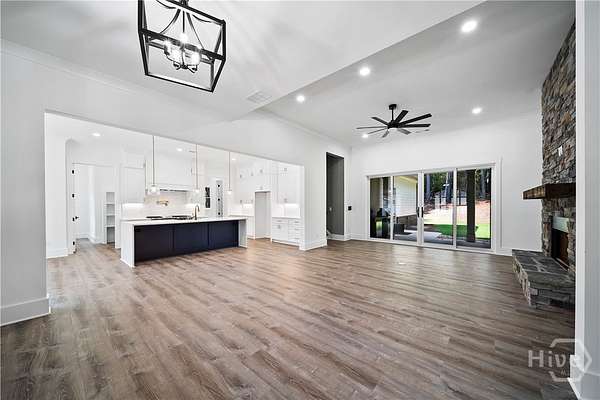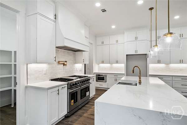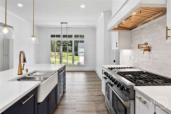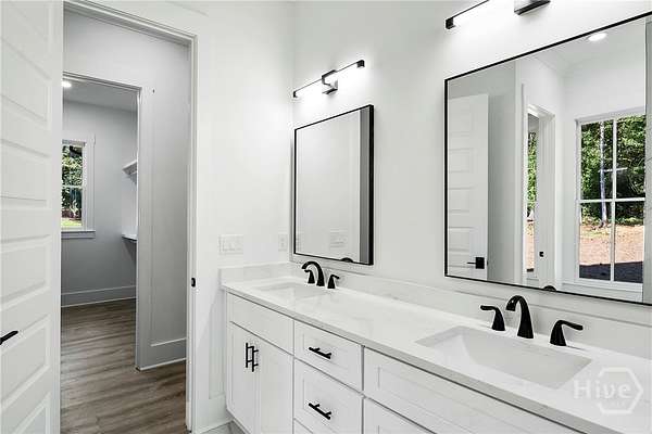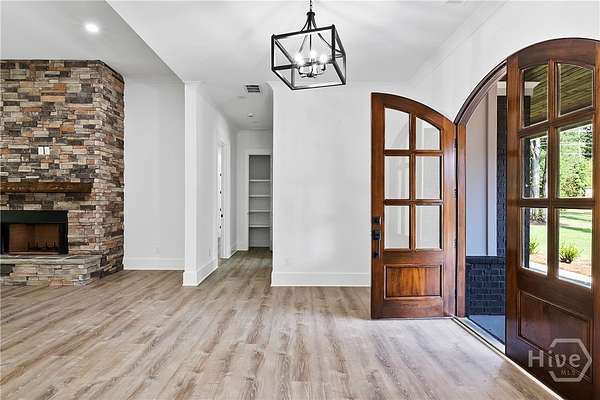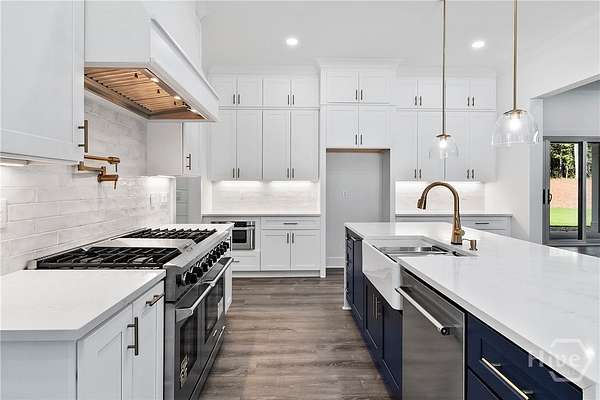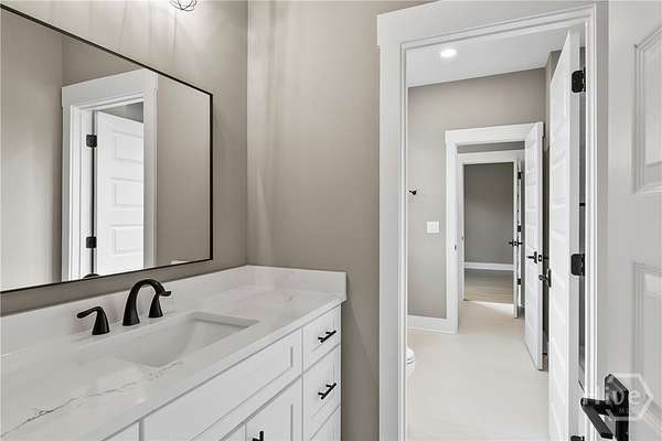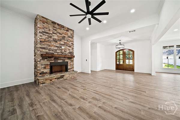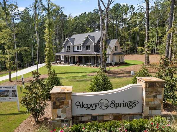Exquisite custom build in the new estate lot community of Alcovy Springs. Peaceful countryside living just minutes from the urban core of Monroe. Upon entering the double mahogany front doors, the foyer provides views that extend across the living room and highlights the outdoor living spaces in the back of the home. Showcasing a Modern Farmhouse design, this home features 10' ceiling's 8' doors, farmhouse finishes, with a stone fireplace in the living room, and additional fireplace on the back porch. Pick a favorite spot or two, there are so many choices in the common area that combines the great room, dining room and kitchen. The kitchen has an island with eating bar and a large butler's pantry with secondary refrigerator. Enjoy a truly amazing primary suite on the main level with an additional guest bedroom / office with private bath.. Upstairs includes 3 bedrooms 2, baths, a media room and study. JUST COMPLETED