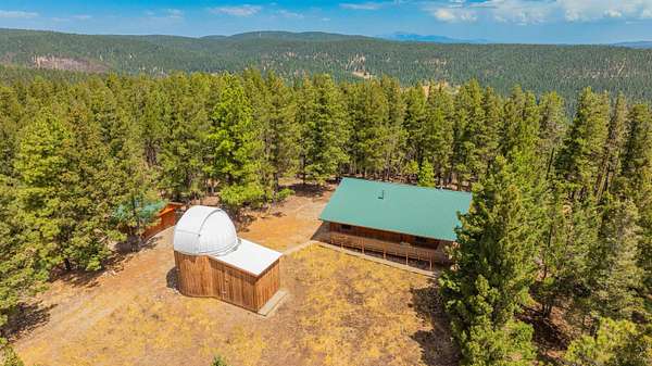 Est $8,062/moStargazers Dream—This property is one of a kind. Situated on approximately 33 acres sits a comfortable two-bedroom, two-bath home with a large deck for entertaining and a hot tub for relaxing. The evening dark skies of the Cloudcroft mountains invite you to the private observatory to watch the starlit skies. The property has a private well and a well house with excellent equipment.