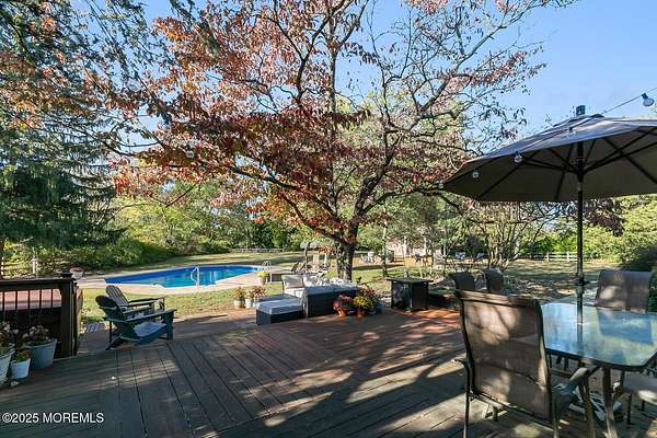 Set on a property with impressive frontage in Colts Neck, this 4-bedroom, 3.5-bath home offers space, functionality, and endless potential. An open floor plan enhances the flow of the home, with a bright kitchen seamlessly connecting to the eat-in area--perfect for everyday living and entertaining. The great room showcases beautiful views of the expansive backyard, filling the space with natural light. The home also features a distinctive office--ideal for working from home or a quiet retreat. An expansive primary bedroom provides a comfortable and private escape. A generously sized basement offers ample space for recreation, or storage. Step outside to an in-ground pool and sprawling yard, offering privacy and plenty of room to make it your own.
