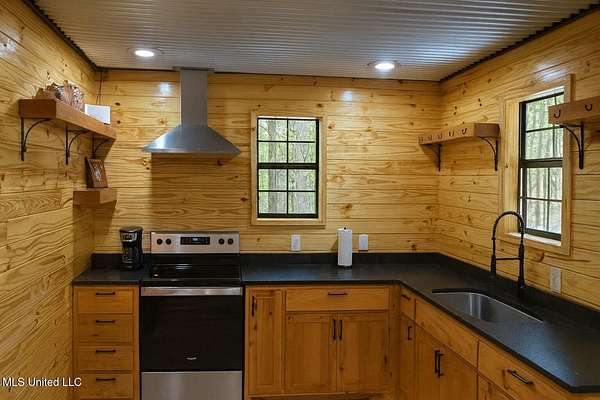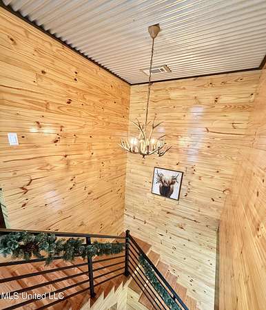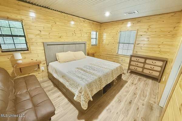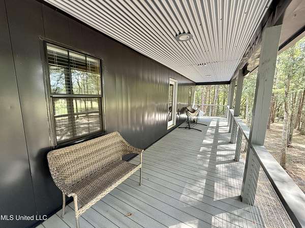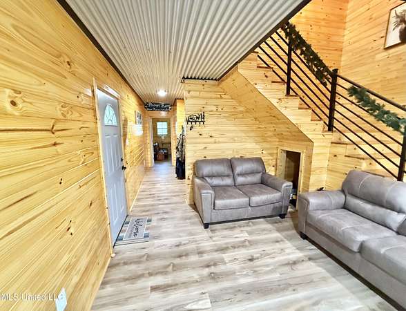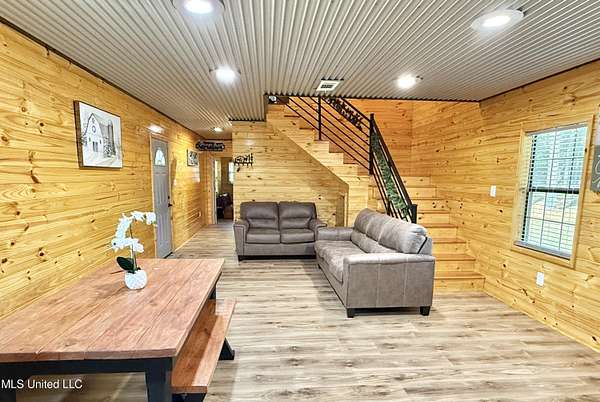 Welcome to 37 Fortenberry Road TT, a custom barndominium set on nearly 50 acres of mixed pasture and woods. Built in December 2022, this two-story metal home offers approximately 1,800 square feet of living space with a perfect blend of rustic charm and modern design. The home features pine board walls, corrugated metal ceilings, and leather-finished granite countertops, creating a warm yet durable interior. The open concept living and dining area is highlighted by natural light and an iron staircase railing, with low-maintenance laminate flooring flowing throughout. The kitchen is equipped with stainless steel appliances, ample cabinet storage, and rustic shelving, while the cozy living space opens to both front and back porches. Two spacious bedrooms with closet space are located upstairs, along with access to a balcony, while downstairs offers two full bathrooms with a vanity and fixtures. Storage is abundant with cubby spaces on both floors, attic space, and a convenient utility room for laundry. Outside, the property boasts 30-35 acres of clear pasture with the balance in mature woods, making it perfect for livestock, recreation, or hunting. A pond site is already in place and ready for water. Additional features include Starlink internet, city water, septic, all-electric systems, and exterior security lighting. Whether you're seeking a private retreat or a full-time residence, this barndominium delivers a lifestyle of comfort and space in a beautiful natural setting.