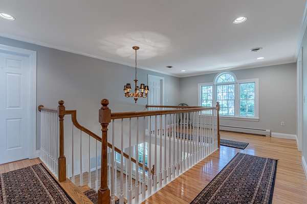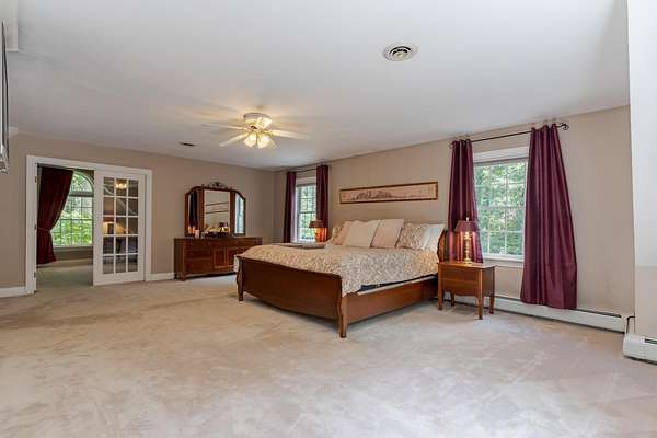 Stunning colonial on nearly 7 acres. This 3,783 sq. ft. home offers 4 bedrooms, 2 full baths, 1 half bath, and 1 three-quarter bath. Features include newly finished wood floors on the first floor and fresh paint, enhancing the home's bright and inviting atmosphere. The updated kitchen boasts a gas stove and granite countertops perfect for any home chef. Enjoy cozy evenings by the wood-burning fireplace or entertain guests in the expansive living areas. The spacious floor plan includes a first-floor room with a three-quarter bath, ideal as a future primary suite. Additional highlights include a 3-car garage, central air conditioning, a large outdoor deck, plenty of room for an inground pool, an irrigation system to maintain lush landscaping, and an unfinished walkout basement with great potential for expansion or recreation. Conveniently located close to the Exeter border and Routes 101, 95, and 1, with just a 10-minute drive to the beach. Don't miss this rare opportunity to own a spacious, well-maintained colonial with plenty of land and easy access to major routes.