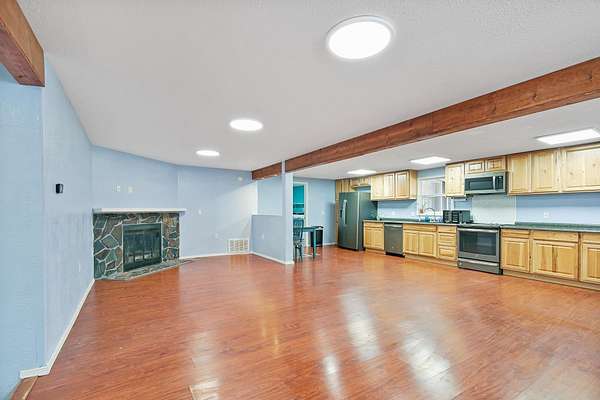 - Carpet, Eat in Kitchen, Fireplace, Fireplc, Flooring, Jet Tub, Laminate, Liv RM, Partial, Shower, Slab, Split Floor Plan, Sunroom, Tub & Shower, Walk-In Closet, Wood, Wood Burning