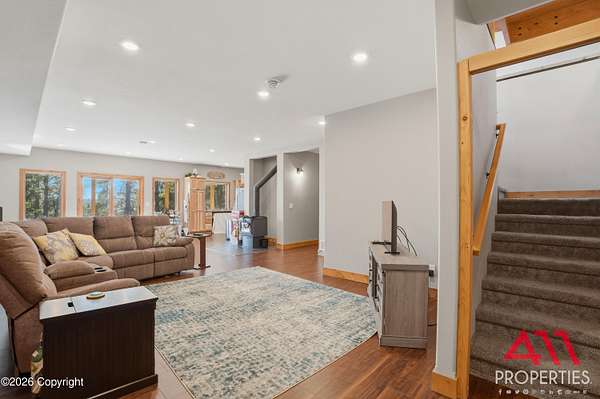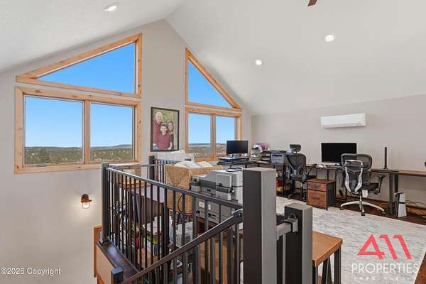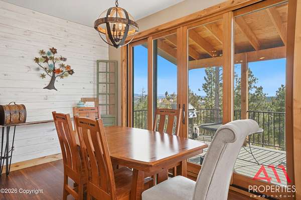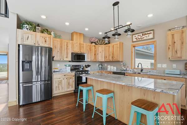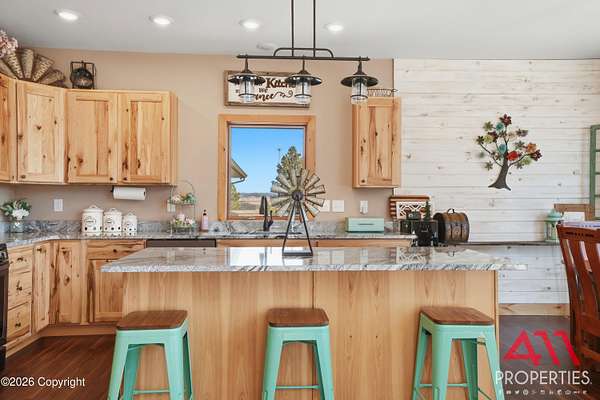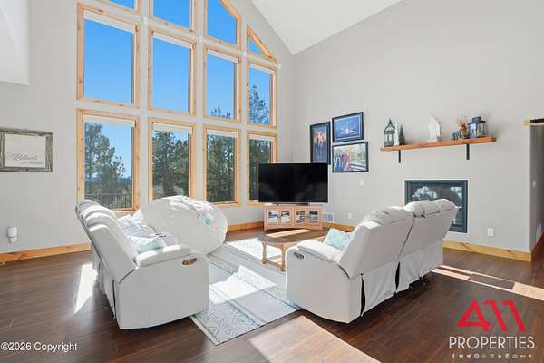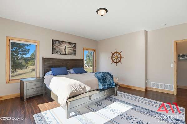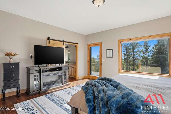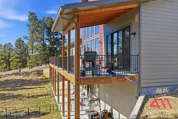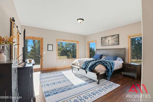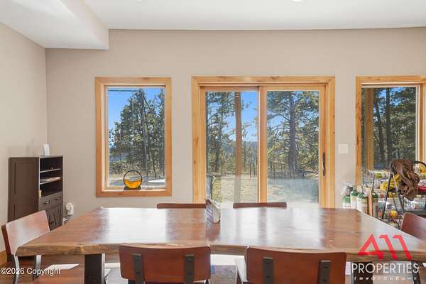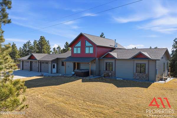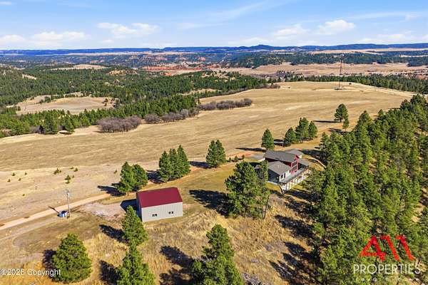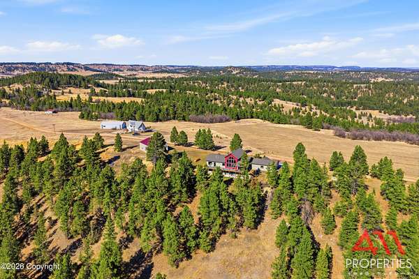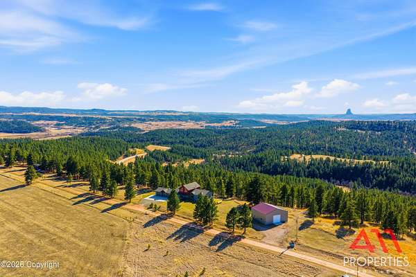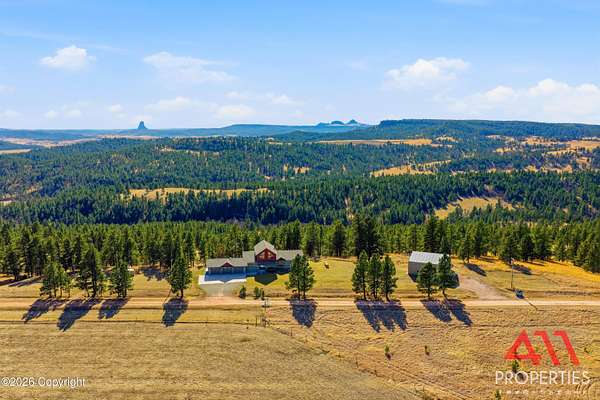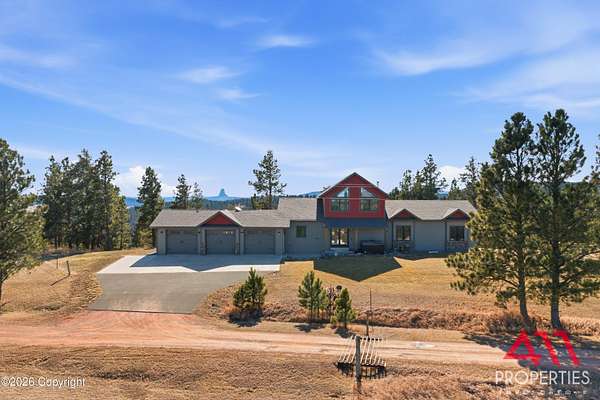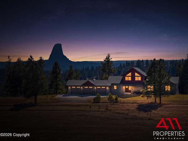 37 Klondike in Hulett, WY is a showstopper! Elevated Wyoming living unfolds on 12.55 acres in Hulett with commanding Devils Tower views and wide-open skies. This 5 BD/3.75 BA, 5,354 sq ft custom ranch features a vaulted, airy layout with a dramatic 22-ft wall of windows, rich hickory cabinetry, knotty alder doors, and granite throughout. Two full kitchens and living areas up/down create ideal multi-gen flexibility. Main-level primary suite w/ frpl & deck access, office loft w/ views, and walk-out basement w/ wood stove & secure safe room/gym. Expansive Trex deck built for hot tub, partially wooded acreage, oversized 3-car garage, and 40x40 insulated shop w/ power, drive-thru & RV hookup. Private Well. Call Jessica LaCour) or text Jaime Keuck) to see it today!