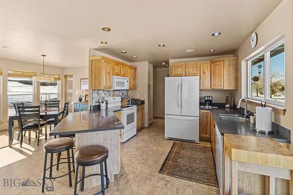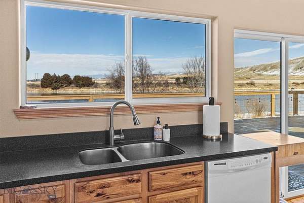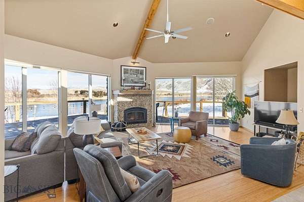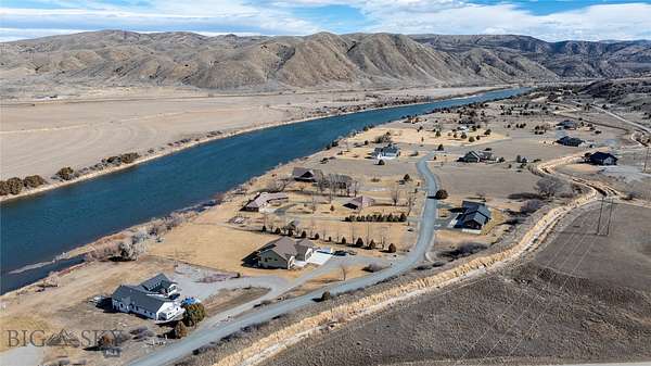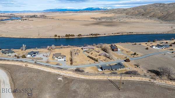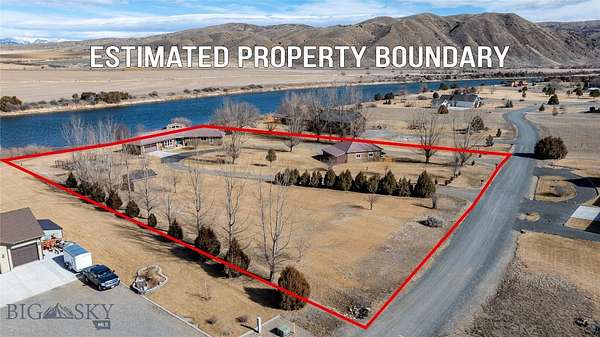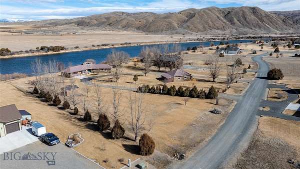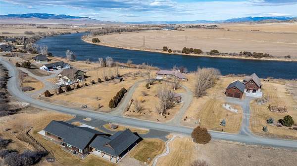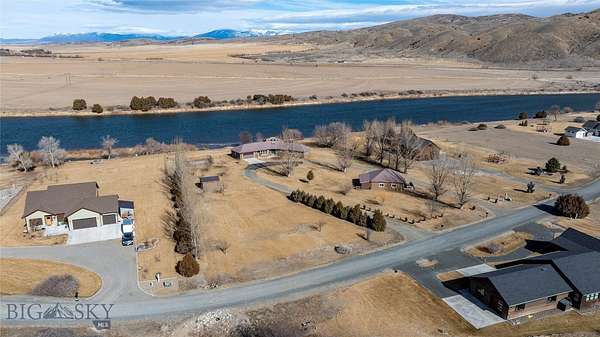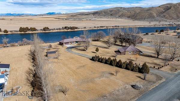 Beautiful custom home situated on the banks of the Missouri River. This property offers 258 feet of river frontage, perfect for fishing or launching/landing a canoe, kayak or raft. The expansive deck and hot tub offer privacy and are ideal vantage points for observing local wildlife and birds while enjoying panoramic mountain views. The home is placed on two platted subdivision lots, aggregated as one. The landscaped yard features over 50 trees, a fenced garden area with raised beds, complete with underground sprinklers throughout. The 1,920 sq. ft. residence features a bright, open floor plan with many oversized windows to take in the panoramic view. While currently configured with a large second bedroom, the layout is designed for three bedrooms and can be easily converted. Additional structures include a two-car attached garage, a two-car detached shop with an additional one-bay enclosed lean-to garage, and a detached garden shed. Residents of the Missouri River Rendezvous enjoy community amenities such as a 3-hole golf course and a park with a boat launch. The property is conveniently located between Three Forks and Townsend, approximately 50 miles from Bozeman and 45 miles from Helena Recreational opportunities are even closer, including access to state lands within walking distance. Call to schedule your showing today!