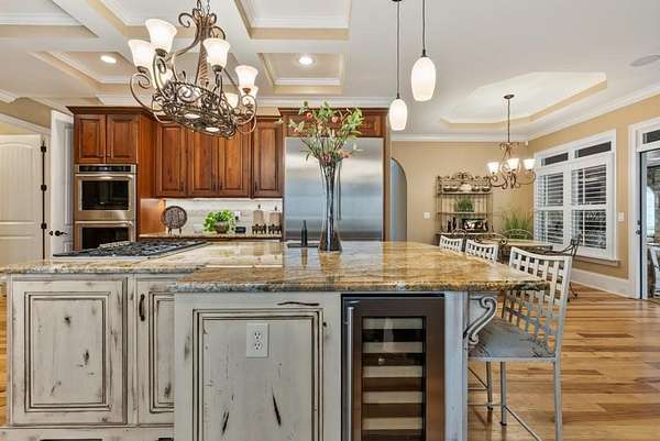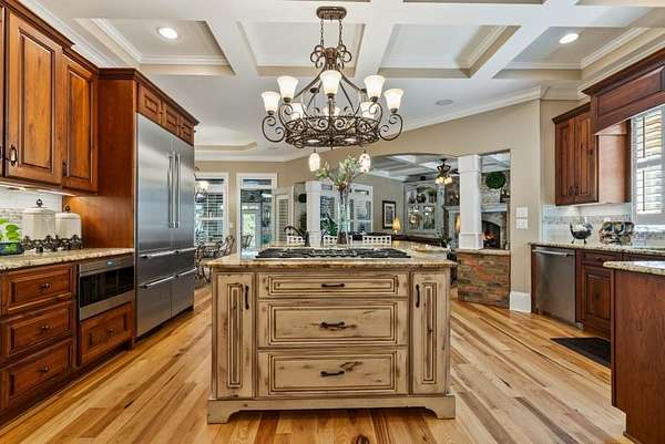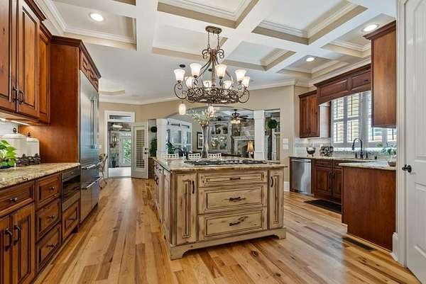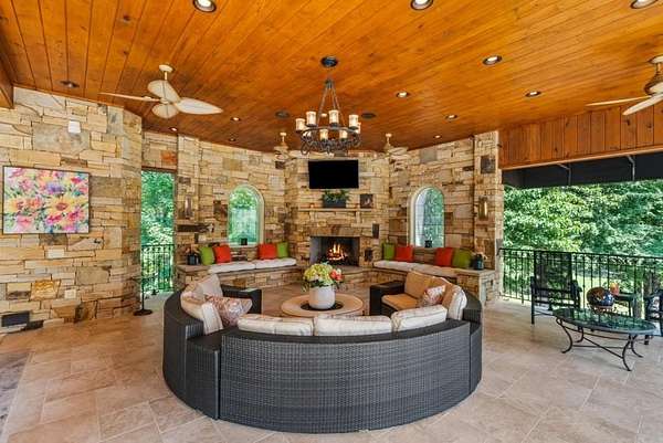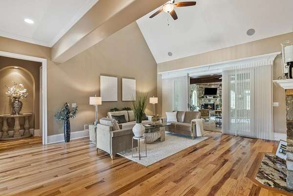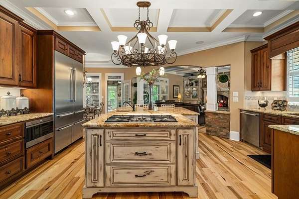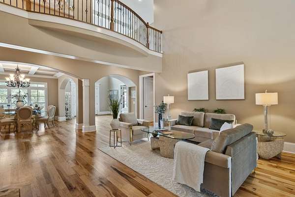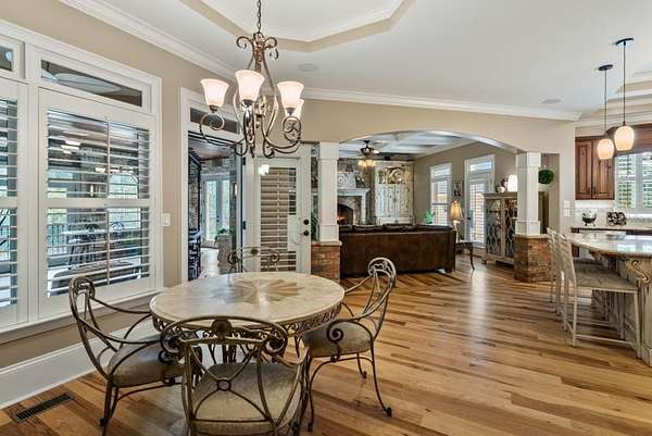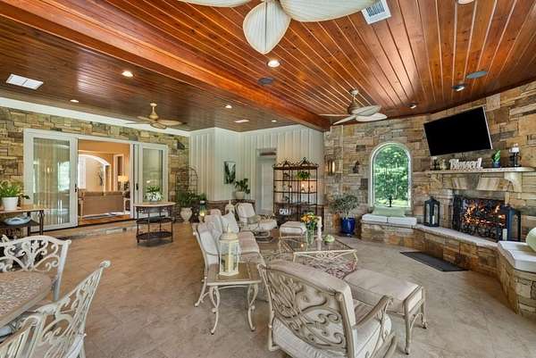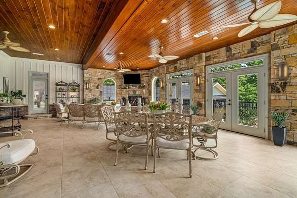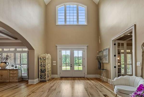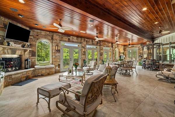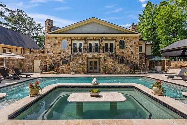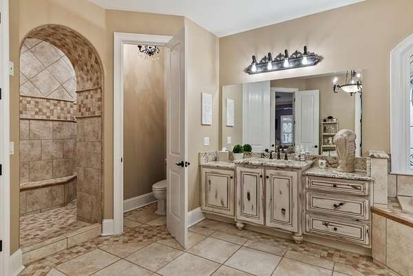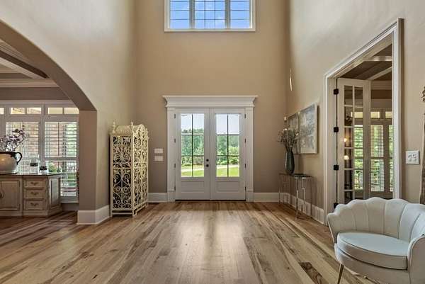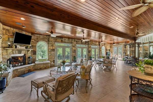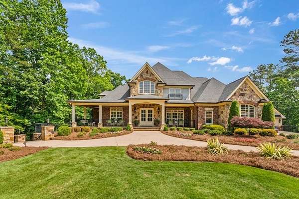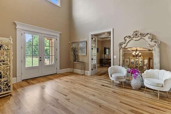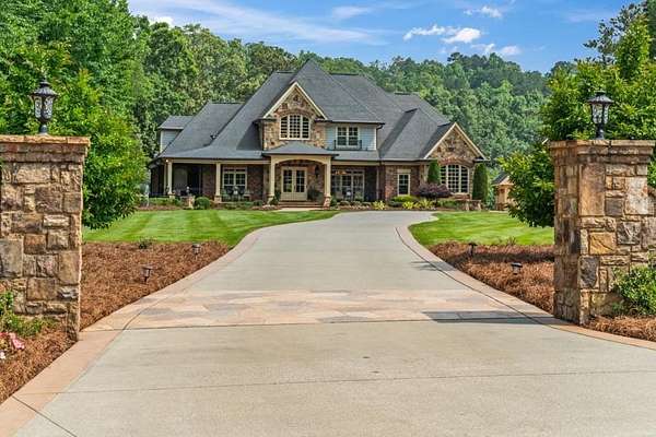 There are places that seem to exist beyond time... where nature whispers, light dances across stone, and every moment feels both effortless and extraordinary. This is one of those rare places. This home is close to everything, yet nestled within the gated community enclave, The Retreat at Pumpkinvine Estates. It's an exceptional 6.3-acre estate gracefully set more than 500 feet beyond its private approach, backing to the tranquil beauty of Pumpkinvine Creek! The setting is of pure serenity - deer gazing in the meadows, sunsets across lush landscapes, and starlit evenings enhanced by softly lit stone pillars and an immersive soundscape. This home features, Solid Brick, Chiseled Stone, and Board and Batten Exteriors, L-Shaped Stone Front Porch. Inside, a soaring Two-Story Foyer welcomes you with light-stained hardwoods, custom plantation shutters, refined millwork, and elegant lighting throughout. The heart of the home is an entertainer's dream: a gourmet kitchen with brand-new Thermador appliances, a Wolf undermount Microwave Drawer. Custom Two-Toned Knotted Cherry Wood Cabinetry. The kitchen opens into into a cozy den, that features a dramatic oversized fireplace with beautiful granite seating, flanked by two beautiful custom built-ins. The main-level oversized primary suite offers a private haven with sitting area, spa bath, and dressing room and oversized shower with jets. The second level has three oversized ensuite bedrooms that provide luxury and comfort for family and guest. The expansive terrace level offers unmatched flexibility for more bedrooms, fitness, media area, living spaces and abundant storage and more. The Outdoor Living Space is extraordinary: a grand pavilion with multiple luxury granite/stacked travertine bars, and a sound system that surrounds the Egyptian style swimming pool, and a 16 seating oversized spa. Unforgettable ambiance after dark, making this The Ultimate Retreat!