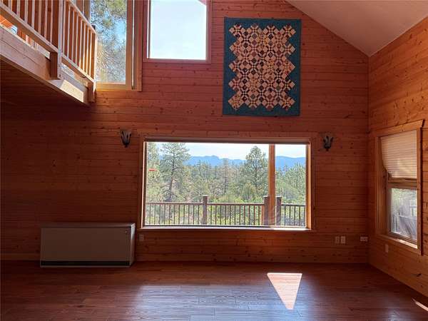 Where serenity meets artistic charm, this property is a nature lover's dream! Tucked away in the popular Laguna Vista subdivision and just over 3 acres of mature trees with nature paths, a rock garden and a large fenced area, that could be perfect for your pets! This two story cabin has both character and charm. Approximately 25 minutes from Chama, this home features spacious decks on both the upper and lower levels and large windows that perfectly frame the Breathtaking Mountain Views of the Brazos and Chama valley. It is worth repeating, Incredible views, especially off the upper deck! The main suite is on the lower level along with the kitchen, dining room, living room, laundry and an additional room that leads to the lower level deck and can be an arts and crafts room, mud room or whatever you want it to be. On the Second level there is a large loft with a bathroom and is perfect for an extra sleeping space for guests and another area for an office that leads out to a deck with spectacular views. So many possibilities! Heron Lake and Willow Creek are close for those fly-fishing enthusiasts. In the back of the house there is a KOHLER grounded generator, very convenient! This could be the home of your dreams. Bring your toys!