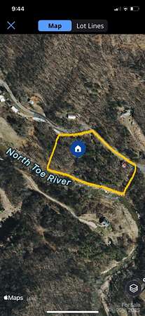 Est $1,635/moProperty consisting of 7.76 acre lot and house currently under renovation. Overlooks the North Toe River with 1000 ft of river frontage and 1000 ft of road frontage as well. It is in the quaint fire district of Frank in beautiful Avery County, near ski slopes, Grandfather Mountain, etc. The North Toe River is well stocked annually with trout, making it great for fishing. There is also a small pond on the property. There are no restrictions on the property. Consists of both sloping and flat terrain. The property contains hardwood timber, which can be harvested when ready. Multiple water springs located on the property. House on property deemed of no value.