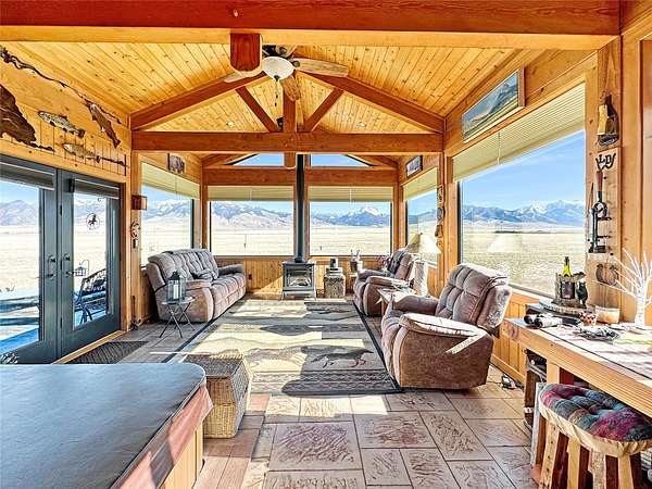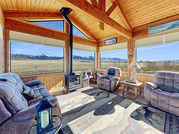 The Rambling Ranch is a completely remodeled home with all new Anderson & Pella windows (except for two small ones in the Master Bath). There is a beautifully remodeled kitchen with custom rustic hickory cabinets, double stainless steel sink, eating bar, walk-in pantry and newer appliances including a 5-burner propane range. The open floorplan includes the Living Room with a pellet stove resting on the fireplace alcove with log accents and custom cabinetry on either side. The Dining area is graced with two antler chandeliers and has outstanding views of the Madison Range. Step down into the sunroom with its vaulted ceiling supported by massive timber frames. Enjoy the uninterrupted view of the Sphinx Mountain, the centerpiece of the Madison River Valley. Or relax in the luxury of the built-in indoor hot tub. The sunroom is heated by a radiant heat floor or the propane fireplace/stove making it a yearround haven where you enjoy the views that change with the seasons. The Master suite has a large walk-in shower, copper sinks in the his and hers vanities and is supplied by the on-demand hot water system. There are two guest bed rooms (the one connecting to the 3-car fully-finished garage has a built-in Murphy Bed, extra-large storage closet and doubles as an office supplied with Fiber Optics) and full guest bath. There's an additional hobby or craft room with custom cabinets, counter tops and sink. You can step outside onto a spacious 19' x 22' patio and relax in the shade adjacent to the outside grilling station. There's also a separate drive with a full hook-up RV pad. Your neighbors include pronghorn antelope year round, elk throughout the winter and early spring, Hungarian partridge, mountain bluebirds, meadow larks and eagles. All of this is located on 20+ acres with easy year-round access, incredible views of the Madison and Gravely Ranges, built-in dog kennel and a 9' x 16'cedar greenhouse. You are minutes from the Madison River or the hiking trails in the Lee Metcalf Wilderness Area, an hour to Yellowstone National Park, 20 minutes to downtown Ennis, and a short stunning riverside drive through the canyon to Bozeman International Airport. In Montana you don't just buy a property you purchase a new lifestyle. Join the adventure today!