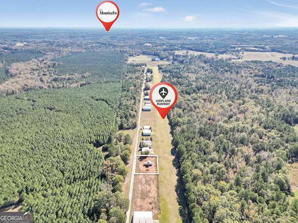 Est $406/moRare Monticello Sky Ranch Airstrip Lot in Monticello, GA. Exceptional opportunity to own a lot in the desirable Sky Ranch Airstrip community in Monticello, Georgia. This 0.34-acre lots 35 & 36 offers direct access to the private runway-perfect for aviation enthusiasts, aircraft storage, or as a base for recreational use. The property includes a shipping container for storage, providing secure space for tools, equipment, or aviation supplies.