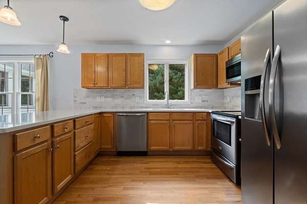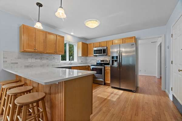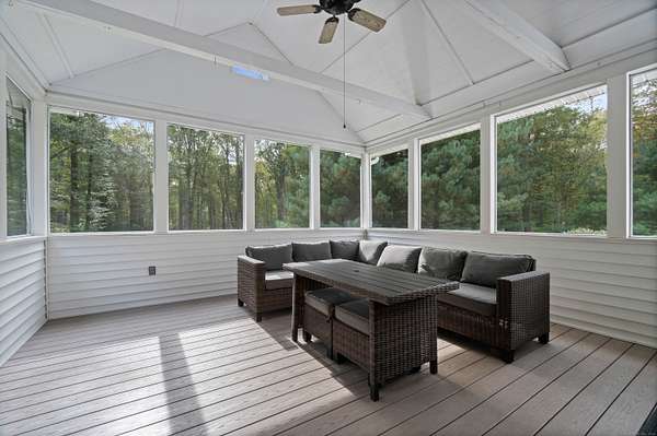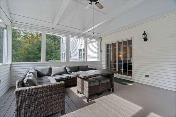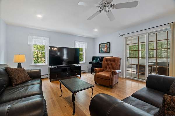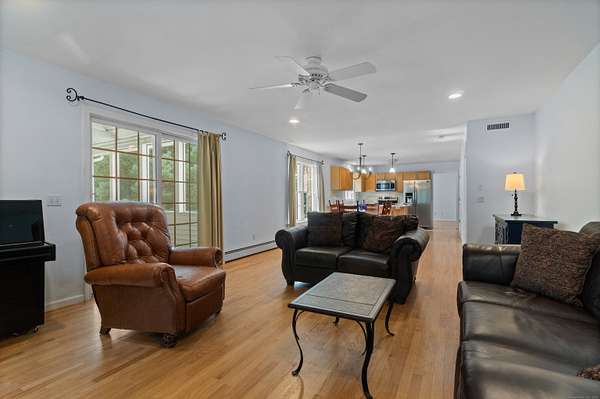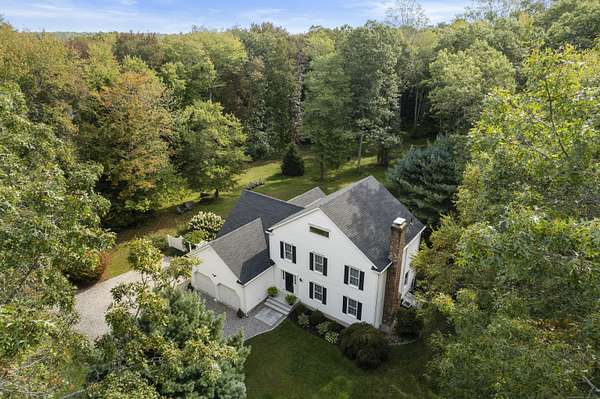 Discover your own private sanctuary on two magnificently wooded acres in picturesque Killingworth. This charming 2,471 square foot Colonial beckons with country elegance and endless possibilities. Step inside to find gleaming hardwood floors that dance with natural light throughout the gracious living spaces, while the brick fireplace in the living room creates an inviting focal point for cozy evenings. The thoughtfully designed floor plan features three bedrooms including a serene primary suite, two and a half baths, and a sun-drenched sunroom that seamlessly extends the family room into nature's embrace. Recent infrastructure updates including a newer roof, water tank, and furnace ensure worry-free living for years to come. What truly sets this property apart are its extra spaces and unique features. The finished flex space above the garage offers limitless potential - home office, art studio, or guest retreat. Ascend to the finished walkup attic where soaring cathedral ceilings and plush carpeting create a magical hideaway perfect for a playroom, media room, or creative sanctuary. The sprawling two-acre canvas of mature trees provides both privacy and potential, enhanced by a second property entrance that opens exciting possibilities for future expansion, workshop space, or simply enhanced privacy and convenience. This rare combination of country tranquility, flexible living spaces, and prime location makes this Killingworth gem a true find.
