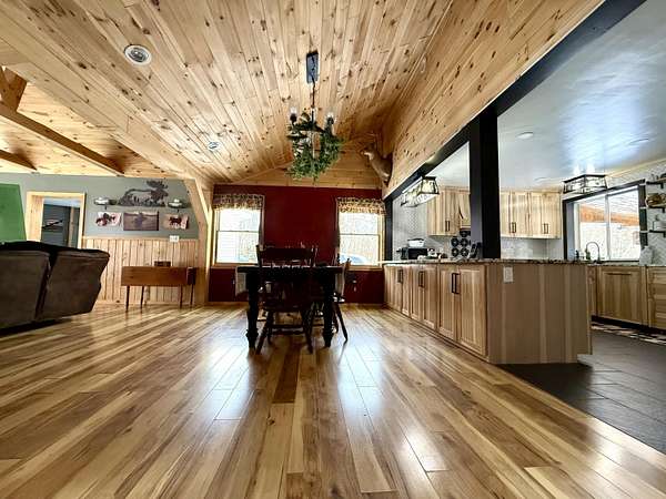 A Rare Adirondack Retreat on 239+ Acres Beautiful 3-bedroom, 2-bath ranch-style home located in the heart of the Adirondacks on 239+ private acres. This property features in-floor radiant heat, breezeway between house and garage, 2-car attached garage with storage above, and an additional woodshed connected to the garage with a wood furnace and extra storage. Inside, the home offers hand-built hickory kitchen cabinets, a dining room, a large living room with expansive windows overlooking the patio and backyard, and a den for additional living space. The primary suite includes a spacious bedroom, large bathroom, and laundry room. Two additional bedrooms and a full bath complete the layout. Custom woodwork throughout the home was crafted from trees harvested directly from the property. A private 1.5+ mile road winds through the acreage, featuring numerous ATV and walking trails. The property also includes four 14' x 14' rustic cabins, a 16' x 26' two-story log cabin with a dug well in need of renovation, established apple trees, wild berries, and a diverse mix of hardwood and softwood species including maple, cherry, birch, ash, pine, and more. Abundant wildlife includes deer, bear, fox, beaver, coyote, and occasional moose tracks. Property can be subdivided into multiple parcels, offering excellent investment or development potential. This exceptional Adirondack property is a must-see for those seeking privacy, recreation, or future development opportunities.