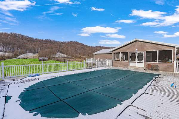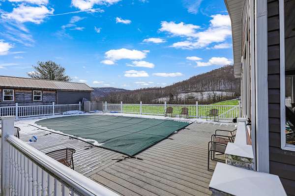 This exceptional, generationally owned farm in Lewis County, Kentucky offers a rare opportunity to own a truly remarkable property. Situated on approximately 129 acres, the farm features a beautiful 3-bedroom, 3-bath home with abundant living space, a full basement, and inviting outdoor areas designed to take in the breathtaking countryside views. The home includes a covered screened-in patio, a wraparound deck, and a fenced-in pool, creating the perfect setting for relaxing or entertaining while enjoying panoramic views of the surrounding farmland. The property also includes several outbuildings and three barns, providing ample space for equipment storage, livestock, or agricultural use. For outdoor enthusiasts, this property is located in one of Kentucky's premier whitetail deer hunting counties, offering outstanding opportunities for whitetail deer and turkey hunting. Approximately 50+/- acres of flat, cleared land provide excellent potential for farming, livestock, future construction, or other development opportunities. The remaining 79+/- acres consist of mature wooded terrain, with timber that was selectively cut more than 25 years ago, offering both natural beauty and long-term value. Conveniently located just off the AA Highway, the property is only 10 minutes from Vanceburg and 20 minutes from Maysville, combining peaceful country living with easy access to nearby amenities. Properties like this rarely become available in Lewis County, making this a unique opportunity to own a stunning farm with endless possibilities.
