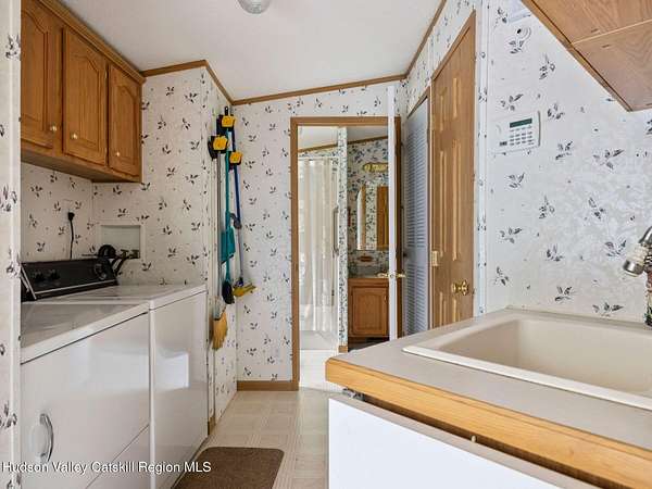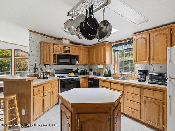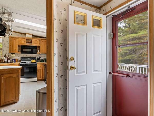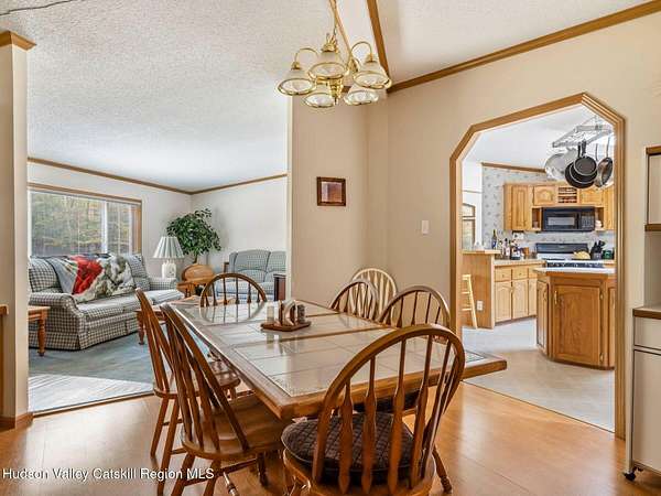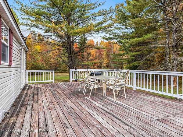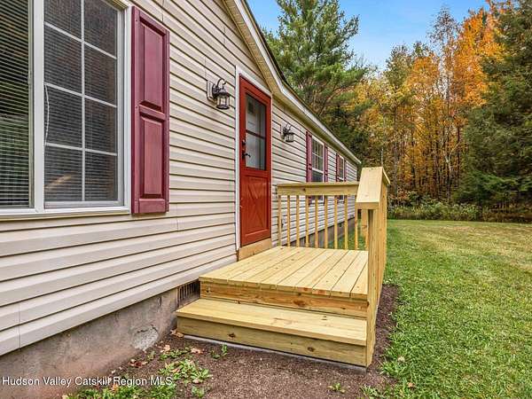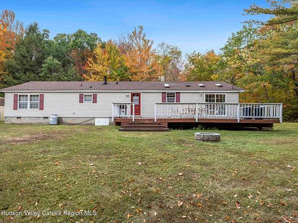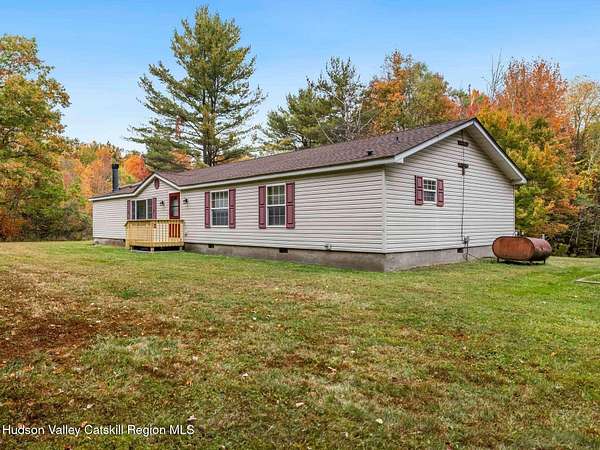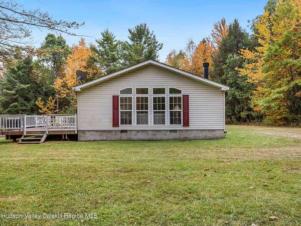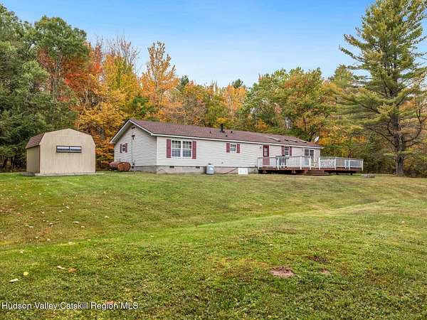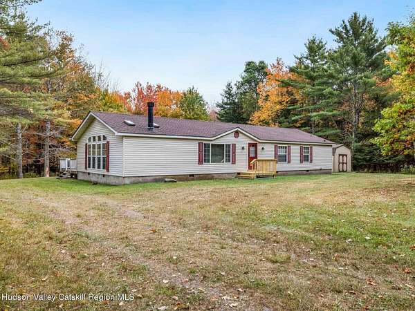 Rare Opportunity Surrounded by 700 Acres of State Land That's right-700 acres of forever-protected State Land at your doorstep! Step into your own personal oasis where you can hike, hunt, explore, or simply enjoy the peace and quiet with birdsong, wildlife, and the whispering wind through the trees. This spotless 1,800 sq ft modular ranch offers a bright and open floor plan with room for all your loved ones and guests. The home features a separate dining room, spacious kitchen with center island, breakfast bar, and abundant cabinetry. The kitchen flows into the living room, anchored by a wood-burning fireplace and oversized windows that flood the space with natural light. An additional seating area provides the perfect spot for quiet relaxation. A functional utility room includes washer/dryer, pantry, and storage for outdoor gear. The front entrance welcomes you with a brand-new deck and screen door. One-level living includes two generously sized bedrooms that share a full bath, plus a primary suite with double sinks, whirlpool tub, shower, and a huge walk-in closet. The home is being sold fully furnished for immediate use. Outside, enjoy a large back deck ideal for BBQs and wildlife viewing, a level backyard perfect for a pool, garden, or playset, and a storage shed for tools and equipment. Whether you update the well-kept 1995 modular to make it your own, or envision a brand-new build, the location is truly unmatched. Just minutes from charming Main Street Windham, Windham Mountain Club for skiing and golf, and all the Catskills have to offer. A true four-season getaway at an affordable price-don't miss this chance to own a rare retreat surrounded by endless nature.