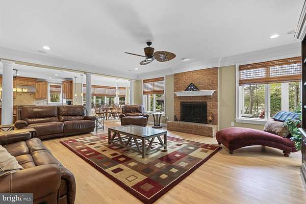 An Exceptional Offering...Where Privacy, Scale, & Waterfront Luxury Converge // Refined living space unfolds throughout this remarkable residence, seamlessly blending timeless architecture with high-end finishes and thoughtfully-curated interiors. Rich hardwood floors extend throughout, while multiple fireplaces and extensive millwork-including crown molding, wainscoting, and stately architectural columns-add warmth, depth, and sophistication at every turn. A dramatic two-story foyer introduces the interior with an elegant turned oak staircase flanked by formal living and dining rooms. The dining room is gracefully defined by columns, while the living room showcases French doors that open into a breathtaking conservatory with grand Palladian windows, vaulted ceilings, upper windows, a gas fireplace, and direct access to the outdoors. // The impressive open-concept great room is designed for entertaining and everyday luxury. The family room makes a striking statement with a brick-accented wood-burning fireplace, a custom built-in media center with bookcases and cabinetry, and refined columned details. The gourmet chef's kitchen is equally exceptional, appointed with top-of-the-line Sub-Zero(R) & Wolf(R) appliances, granite counters, a large island with seating, custom cabinetry, chic backsplash, and a peninsula breakfast bar that flows effortlessly into the sunlit breakfast room with panoramic windows and exterior access. A well-appointed butler's pantry with a beverage refrigerator and built-in wine storage enhances functionality. The main level also offers a private bedroom suite with French doors, built-ins, a closet, and an attached full bathroom-ideal for guests or multigenerational living. A powder room and a laundry room complete this level. // Upstairs, the luxurious primary suite features a tray ceiling, a sitting room with gas fireplace and panoramic water views, multiple closets, and a spa-inspired bathroom with separate vanities, a frameless glass-enclosed shower, a corner Jacuzzi(R) tub, and heated floors. Three additional generously sized bedrooms on this level each include their own private bathrooms-one offering dual closets, including a hidden walk-in. // The walk-up lower level is designed for versatility and indulgence, in a spacious recreation room with custom built-ins, a stone-accented fireplace, a wet bar and kitchenette, and a temperature-controlled wine cellar with capacity for 500 bottles. A game area, gym or bonus room, full bathroom, and storage area complete this level. // Outdoors, the property embodies a true resort. A deck with a partial pergola and a fully equipped Lynx(R) outdoor kitchen overlooks expansive paver patios surrounding a lagoon-style saltwater pool with cascading waterfall and built-in heated spa. A screened gazebo is complete with electric screens and a stone fireplace, while lush, tropical-inspired landscaping enhances the sense of escape. Extending beyond, enjoy your private pier along Blackhole Creek affords you the ease and convenience of an unparalleled waterfront lifestyle.