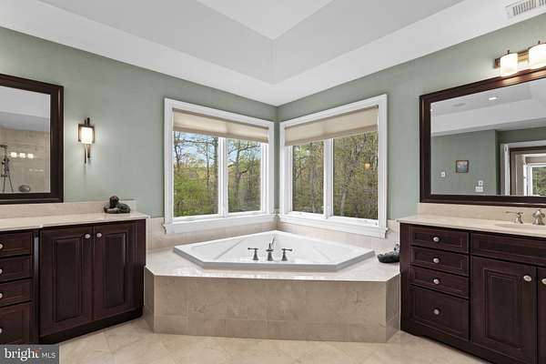 - 2 nd Kitchen, Additional Stairway, Attic, Bar, Bay Front Primary Bedroom, Breakfast Area, Built-Ins, Butlers Pantry, Carpet, Ceiling Fan(s), Chair Railings, Crown Moldings, Dining Area, Eat-In Kitchen, Entry Level Bedroom, Family Room Off Kitchen, Formal/Separate Dining Room, Gourmet Kitchen, Jetted Tub Bathroom, Primary Bath(s), Skylight(s), Soaking Tub Bathroom, Sound System, Walk-In Closet(s), Walk-In Shower Bathroom, Wet/Dry Bar, Whirl Pool/Hot Tub, Wine Storage, Wood Floors