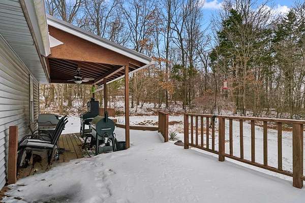 - Covered Deck, Covered Front Porch, Garden Area, Landscaping, Mature Trees