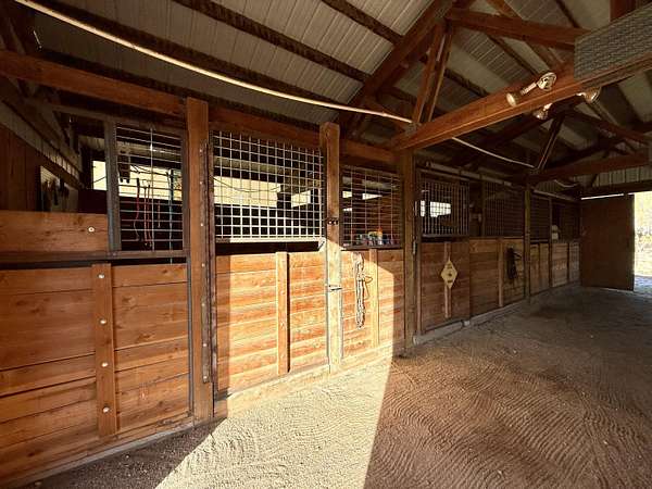 Just the right amount of Acreage! Almost 10 acres with Horse Facilities! This beautiful home features 3 bedrooms, 2 full baths. Some updates include, a metal roof in 2020,A new septic in Oct 2024, A new well pump in July 2025, a new water heater in spring 2025 and a new shower in 2025. Besides the Monitor Heater there is also apellet stove as well as a fireplace that currently has an electronic insert. Spacious living room with vaulted ceilings, large formal dining area. The main bedroom features 2 walk-In closets, an on suite with a corner garden tub and a step in shower! There is a covered front porch as well as a large covered deck in the back for those relaxing evenings! 6 Stall Horse Barn with a breeze way, A hay barn, An Outdoor Riding Arena, Round Pen and several corrals. There is a covered 2 car parking area along with a nice sized storage building for your feed, tack or pellets. Asphalt circledriveway.