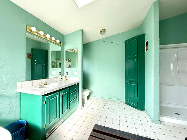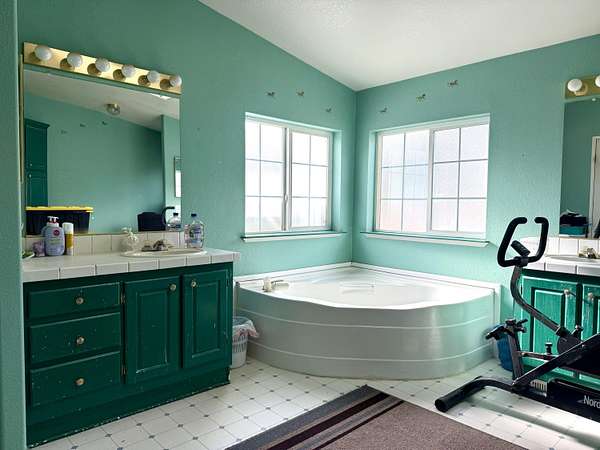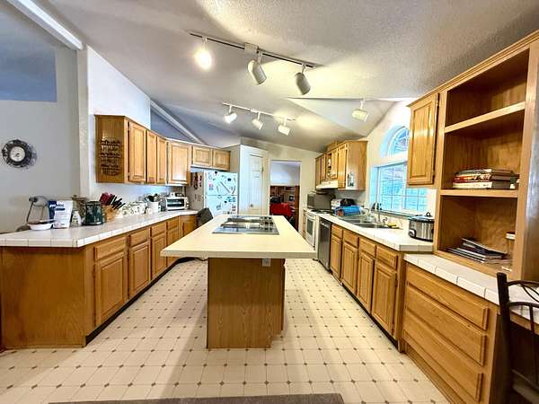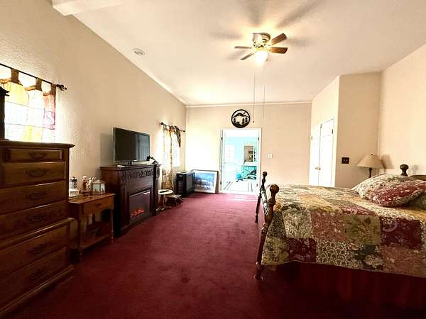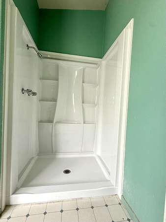 - Ceiling Fan(s), Double Vanity, Fiberglass Stall Shower, Kitchen Island, Linen Closet, Open Floorplan, Pantry, Primary Downstairs, Shower/Tub Combo, Soaking Tub, Vaulted Ceiling(s), Walk-In Closet(s)