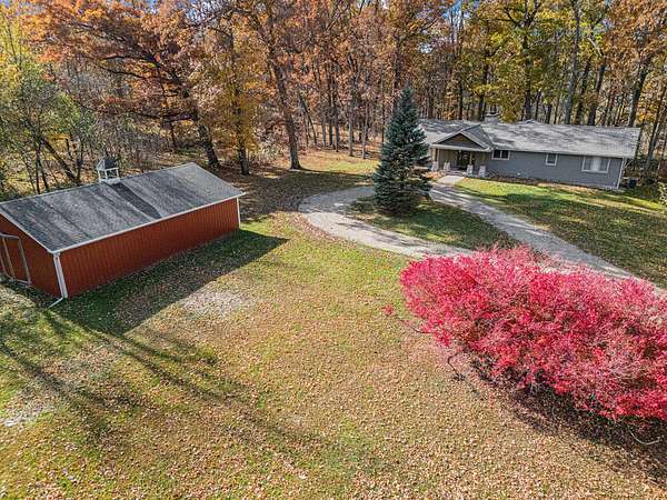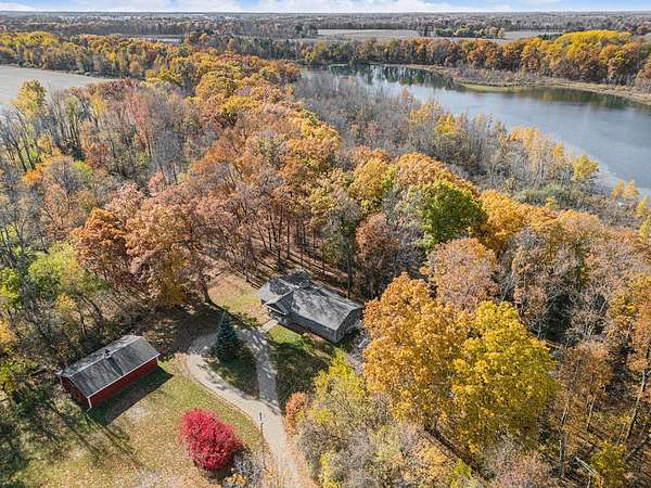 Experience peaceful lakefront living on beautiful Vincent Lake! Nestled on 3.8 serene acres, this spacious 4-bedroom, 2-bath home offers a perfect blend of comfort, functionality, and natural beauty. Nearest neighbor is 1/4 mile away, giving plenty of privacy. The open-concept kitchen, dining, and living areas create a welcoming flow ideal for both entertaining and everyday living. The dining room features a stunning stone fireplace, while the family room offers a cozy freestanding wood stove and a walkout to the inviting 3-season cedar sunroom -- the perfect place to relax and take in the tranquil views. Throughout the home, you'll find warm hickory wood floors that add character and charm. Step outside onto the expansive wood deck overlooking Vincent Lake, a peaceful no-wake fishing lake ideal for kayaking, paddle boarding, and quiet evenings by the water. The property also includes a 30x40 pole barn, providing plenty of storage or workshop space. This company makes no warranty or representations about the contents of this data including room sizes & sq. footage. It is the responsibility of the parties looking at the property to satisfy themselves as to the accuracy of this information. Taxes were obtained from the local assessor and the taxes could change for the buyer after a closed transaction.