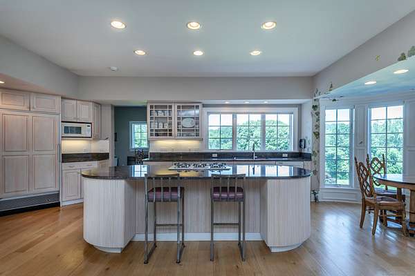 French Chateau in Bridgwater. Considered one of the most coveted streets in the surrounding areas. Stone wall with gated entrance. Double height foyer.Atrium living room with wall of French doors and marble fireplace. Sexy bar leads to the library. Open & gourmet kitchen with fireplace and butler's pantry. Formal dining room. First floor primary suite with marble bath and massive walk-in closet. Billiards room and 2 half baths. Upstairs guest rooms are both with en-suite baths. There is a perfect spot for a 4th bedroom ready for your ideas in the lower level or finish off a portion of the barn/garage. Fabulous terrace is accessed from most every room overlooks the lush grounds, Gunite pool with spa, cabana and views. Complete privacy on a coveted & prestigious street with a majestic presence. The lower level with an additional 1/2 bath and 4 car parking spaces. Additional detached garage with 4 additional bays and one oversized for a boat and an upstairs loft that could be finished. The boat launch to Lake Lillinonah is just at the end of the street. Generator. The property has been meticulously maintained and is magical. This is a true, trophy property not to be missed. Quintessential New England at it's best.