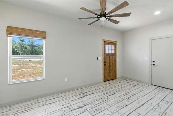 The property also boasts a versatile attached shop with two insulated roll-up doors, spray foam insulation, and 12-foot-wide sidewalks, providing ample space for storage, hobbies, or projects. With a private water well, mostly cleared acreage, and direct access to the LBJ Grasslands for horseback riding and trail adventures, this property offers endless possibilities.