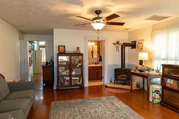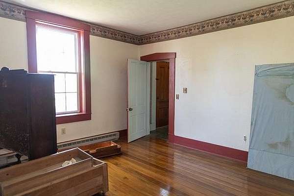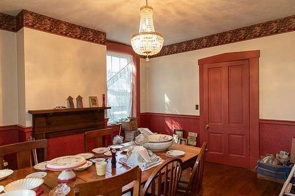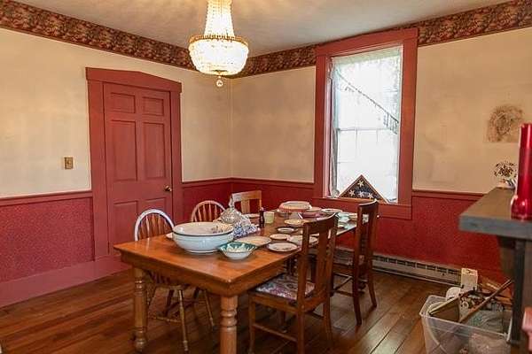 Step into the charm of this classic 4-bedroom, 1.5-bath Federal-style home set on 1.65 peaceful acres. Offering generous living space, the main level features a welcoming family room with a gas wood stove, a bright sitting area with a bay window, an eat-in kitchen, dining room, and a flexible room that can serve as a fourth bedroom or living room. Upstairs, you'll find three additional bedrooms and a full bath with washer and dryer. The home offers electric baseboard heat throughout, with added comfort from a heat pump serving the family room, two upstairs bedrooms, and the full bath. Outside, enjoy a detached two-car garage, barn, circular drive and copper gutters and downspouts that add to the home's character. With room to gather, relax, and grow, this property offers the perfect blend of charm, space, and functionality.