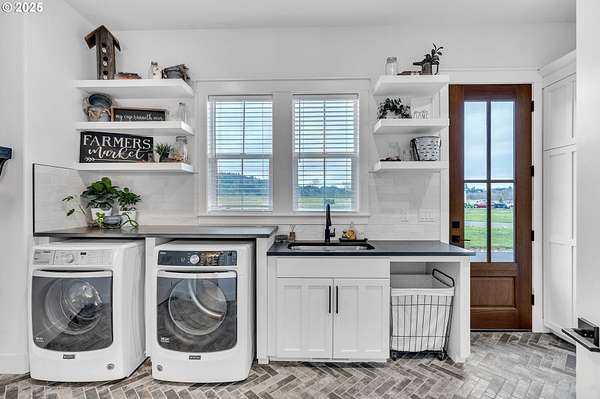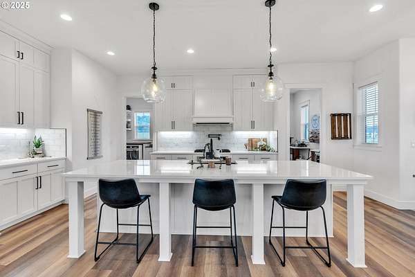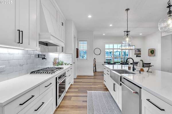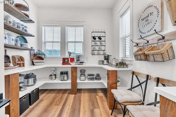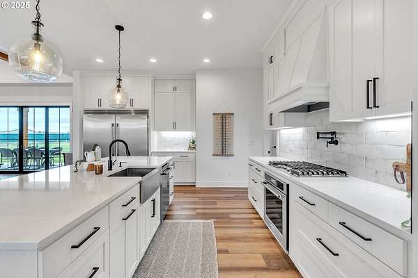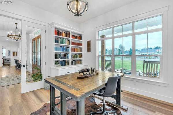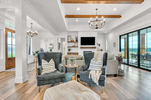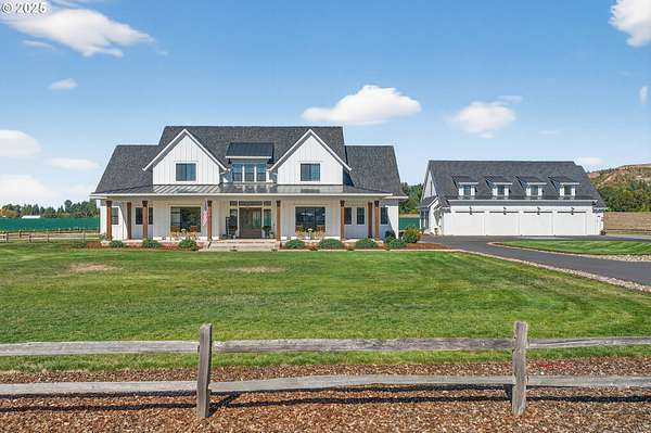 Imagine coming home to two peaceful acres of Northwest beauty with a home that truly has it all. Inside, the main level features a spacious primary suite with spa-like bath, a nearby office, and an inviting living room with fireplace that flows into a chef's kitchen with island, gas range with a pot filler, stainless appliances, and butler's pantry. Step outside to a covered patio with a wood-burning fireplace - an ideal spot for cozy nights and roasting s'mores. Upstairs you'll find a family room with wet bar, dining space, and three more bedrooms, perfect for gatherings or quiet evenings in. Car enthusiasts and hobbyists alike will appreciate the 3-car attached garage paired with a detached garage featuring a full 70x40 workshop, fish cleaning station, bathroom, and a 1,700 sq ft loft above offering 2 bedrooms and 2 baths. It is ideal for hosting guests or multi-generational living. This is a place designed for connection, comfort, and endless possibilities. Check out the feature sheet for more details!