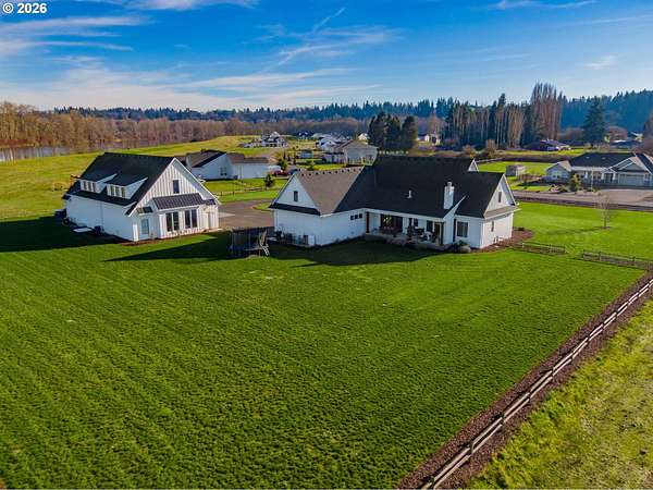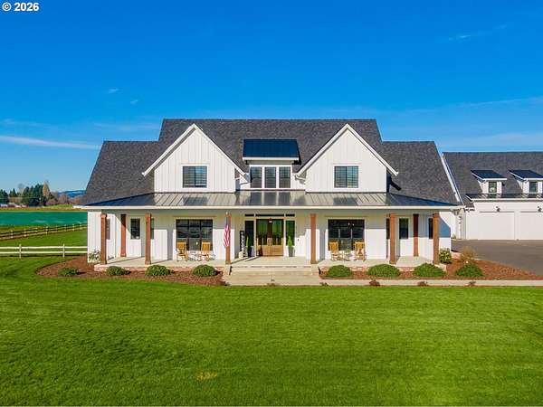 Set on 2 peaceful acres surrounded by classic Pacific Northwest scenery, this property offers space, style, and flexibility at every turn. The main level features a generous primary suite with a spa-like bath, a dedicated home office, and a warm living room with a fireplace that opens seamlessly to the chef's kitchen, complete with an island, gas range with pot filler, stainless steel appliances, and a butler's pantry. Step outside to the covered patio with a wood-burning fireplace, ideal for year-round enjoyment, cozy evenings, and memorable gatherings. Upstairs, a spacious family room with a wet bar and dining area is accompanied by three additional bedrooms, creating the perfect setup for entertaining or everyday living. The three-car attached garage provides everyday convenience, while the detached garage and workshop truly set this property apart. The expansive 70x40 shop includes a fish cleaning station, bathroom, and an approximately 1,700 sq ft loft with two bedrooms and two baths, making it ideal for guests, or hosting larger gatherings and special events. Thoughtfully designed for connection, comfort, and endless possibilities. Explore more in the feature sheet!
