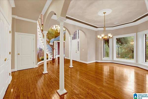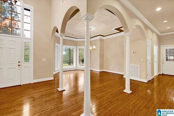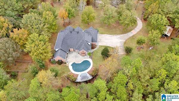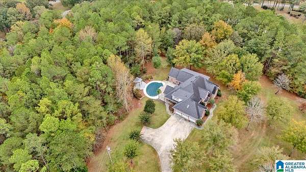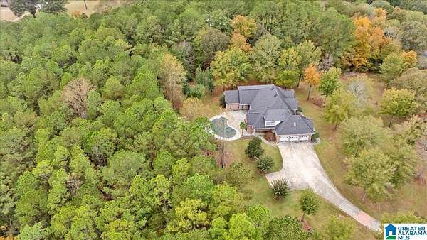 Welcome to your private retreat at 370 Waites Rd in Talladega -- a stunning 5-bedroom, 3 full & 2- half baths estate on 5.21 acres with over 5,000 sq. ft. of living space and a sparkling in-ground pool. Step inside to soaring ceilings, hardwood floors, and a two-story family room with a fireplace. The chef's kitchen offers solid wood cabinets, a large island, and open flow to the keeping room. The primary suite on the main level features a sitting area, jetted tub, and dual walk-in closets. Upstairs includes four bedrooms, a Jack-and-Jill bath, and a large bonus room. Enjoy outdoor living with a covered patio and pool area surrounded by mature trees. Complete with a 3-car garage, this home blends luxury, privacy, and space--just minutes from town and Lake Logan Martin. Perfect for families, entertainers, or anyone seeking peaceful country living with resort-style comfort and timeless Southern charm.