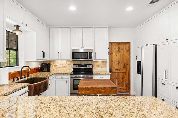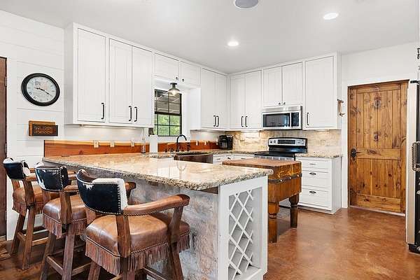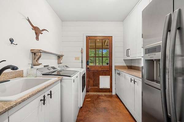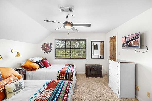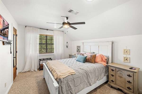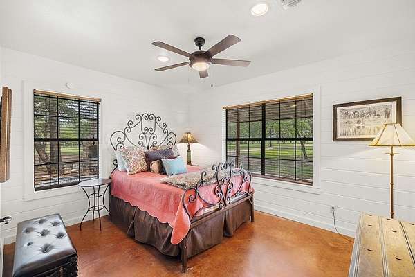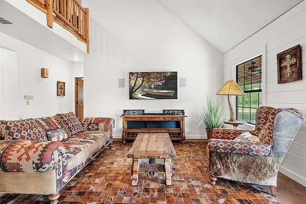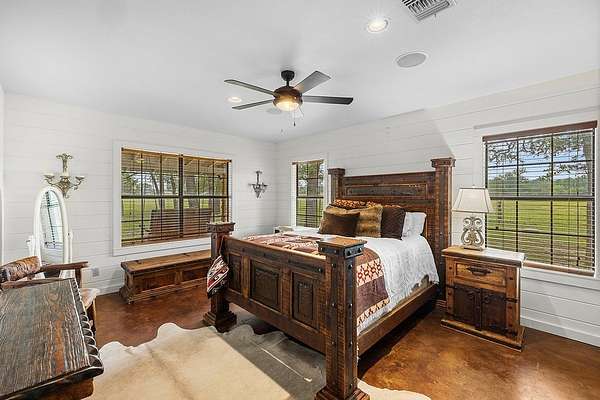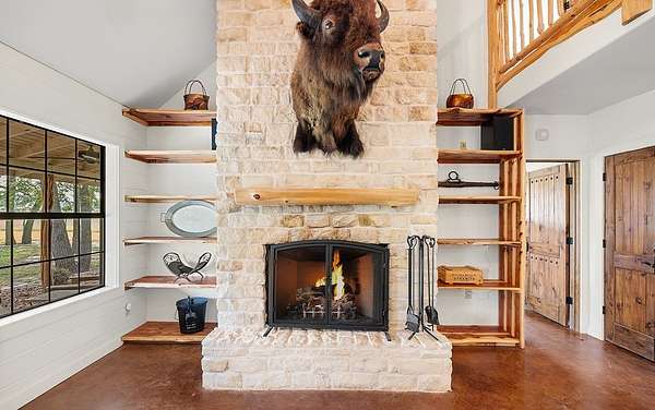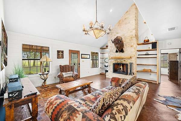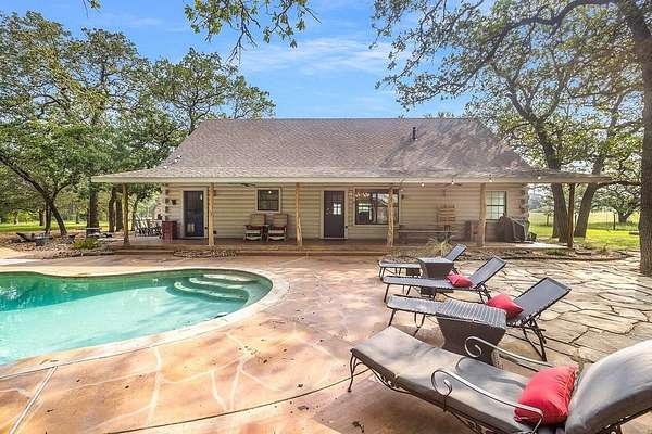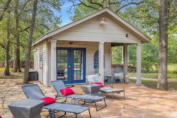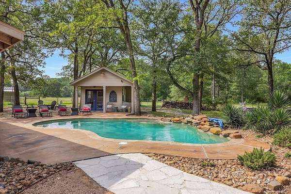 Experience rustic log-cabin charm nestled on 12+ peaceful acres. With 2,380 sq ft of living space, 4 bedrooms, 3 baths & spacious porches, this property has room to relax, entertain, and enjoy nature in style. Step inside to vaulted ceilings, a cozy stone fireplace, and an open-concept layout filled with natural light. The kitchen features ample cabinetry, adjacent laundry room/pantry, ideal for hosting gatherings. Outdoor living is a dream with a sparkling in-ground pool (resurfaced 2019) and pool house with living area, built-in bunks & bathroom?perfect for entertaining. Recent upgrades: both A/C units replaced May 2024, tankless propane water heater installed Jan 2022, new pool filter and pump installed Aug 2024. Property has a pond, water well & septic system. This property is a rare find?combining privacy, charm, and thoughtful upgrades throughout. A serene primary residence, a vacation getaway, or a multi-use investment only 13 miles from Round Top, TX.