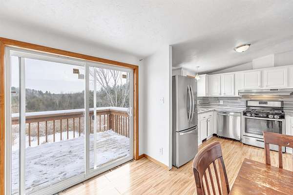 Don't miss the chance to own this beautiful ranch home overlooking a breathtaking panoramic view of rolling hills, pond & surrounding woods! The secluded setting provides the utmost privacy while only 5 min from Hwy 41. Step inside & be greeted by a bright & comfortable main level offering 3 BR, 2 BA & cozy LR w/built-in fireplace. The awesome LL walk-out is spacious & perfect for entertaining, exercising or movie night. Easily could add bedrooms if needed. Enjoy the convenience of the insulated/heated garage w/major updates already done. Simply move in & immediately start enjoying your little slice of paradise. Windows & Siding - 2025, Water Softener & Filtration System - 2024, Metal Roof, Furnace & A/C - 2019, Tankless Water Heater - 2018 plus 6 Panel Doors, Trim & Tiled Walk-In Shower
