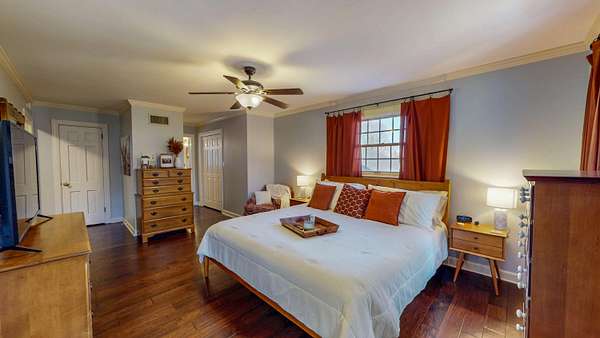 Welcome to 3700 Moreland Drive NE, a timeless Georgian Colonial nestled on 2.48 private acres in the heart of Cleveland, Tennessee. This rare in-town estate offers just under 6,000 square feet of living space and is just five minutes from top-rated schools, shopping, and dining in North Cleveland. The main floor is thoughtfully designed for both daily living and entertaining. It features a spacious kitchen with an eat-in breakfast area and walk-in pantry, a formal dining room, a bright and inviting living room, and a cozy den with a gas fireplace. You'll also find two main-level primary suites, perfect for multi-generational living or guest accommodations. A deluxe sunroom with a dramatic cathedral-style gazebo ceiling provides a peaceful indoor retreat filled with natural light. The large laundry and craft room with a half bath adds convenience and versatility. Upstairs offers even more flexibility with a third primary suite, two additional bedrooms, a full bathroom, a large walk-in closet, and a walk-out balcony overlooking the beautiful grounds. The fully finished basement includes a second living area with a fireplace, a kitchenette, a full bath, and a 450-square-foot climate-controlled storage space. This lower level is ideal for entertaining, hosting guests, or setting up a private office or gym. Step outside to enjoy a walk-out 20x40 salt water in-ground pool surrounded by mature trees and open yard space, offering the perfect combination of privacy and outdoor enjoyment. This is a rare opportunity to own a grand, well-maintained home on a spacious lot in one of Cleveland's most desirable areas. With its classic style, modern amenities, and unbeatable location, this property is perfect for families, professionals, or anyone looking for room to grow without sacrificing convenience.