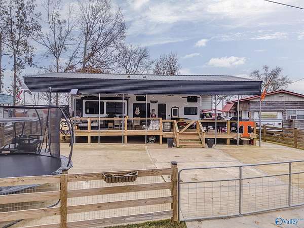 Enjoy turnkey lake living with this beautifully upgraded 2023 Forest River Wildwood Grand Lodge 42DL, valued at nearly $60,000 and loaded with high-end improvements. This setup features a concrete pad, sewer hookup, and a stunning covered deck and porch. This is ideal for year-round enjoyment. Relax or entertain around the custom-built fireplace with mounted TV, all within a fully fenced area for privacy. Significant investments have been made throughout, including the deck, cover, concrete, fencing, and utilities. Located in a prime spot with shared boat access and year-round water, this property offers the perfect blend of comfort, convenie