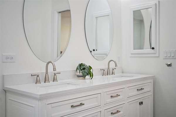 The brand-new kitchen is the heart of the home, featuring striking brick walls that add texture and charm. With updated 2023 appliances, a large prep island, and a walk-in pantry, it’s built for real life. Quartzite countertops offer a high-end finish that’s also durable and low-maintenance. The same quartzite surfaces flow from the kitchen into the fully renovated bathrooms, tying the design together seamlessly. You’ll also notice plenty of smart storage tucked away throughout the house to keep things organized.