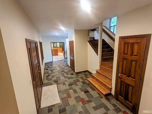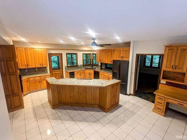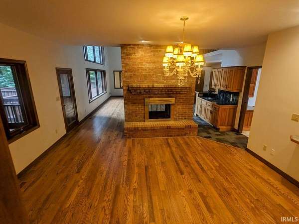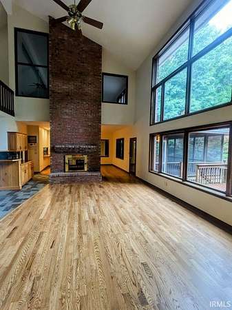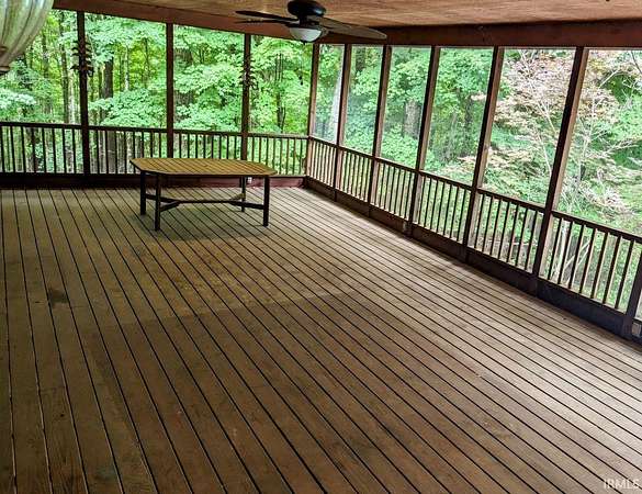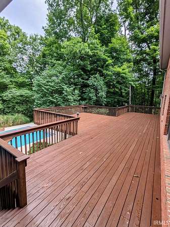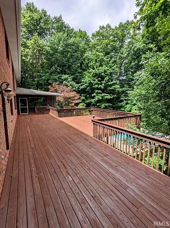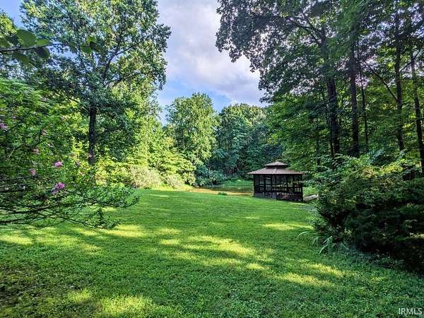 Perfectly set on 5+ acres of tree-shaded woods, escape to this privately situated majestic all brick home. Resting within a peaceful cul-de-sac, nestled in the heart of the community, this palatial home is where warmth meets joy. Imagine friends or family gatherings by one of the 4 double fireplaces, as laughter echo's throughout the secluded backyard. Richly-appointed spaces include large gathering areas, sleek finishes and a thoughtful open plan layout. Soaring ceilings and massive windows fill the property with natural light. Immaculately maintained and logically arranged on 3 levels, encompassing 6 bedrooms(with a possible 7th), 2 primary suites, 7 full bathrooms, kitchens on each level, and 3 laundry rooms. Pristine oak hardwood floors cover the 1st floor living spaces and rich hickory cabinets compliment the main level kitchen, surrounded by a center island with gas cooktop, high end appliances, planning desk and breakfast room. The cheerful sunroom, surrounded by 3 walls of windows, is a delightful respite after cooking a holiday meal or entertaining guests. A formal dining room and the 24' x 16' 2.5 story great room, separated by a double sided fireplace, flow graciously from the open kitchen. Each level is designed to accommodate a variety of living styles, such as multi-family generations. executive guest quarters, or family retreats. In the summer season ease the stress of the day by plunging into the 20' x 40' heated pool, surrounded by mother nature. Relax in the screened porch or soak up the sun on one of three decks. The possibilities are endless with this 2nd owner property. "Key" features are the 2 geo-thermal HVAC systems generating exceptional energy efficiency, on site propane gas used for the main level kitchen cooktop and to heat the pool, an oversized 3 car garage with new epoxy flooring, plus a wood working shop with pegboard walls and numerous electrical outlets. Let's not forget about unwinding in the front lawn gazebo or canoe around the pond under the twilight stars. If entertaining with voluminous rooms, the need for multiple bedrooms and baths, is a function of your lifestyle, consider this serene location. This magnificent custom built residence is less than 10 minutes to the IU campus, downtown, schools, eastside shopping and quick access to I-69 for commuters, rode trips and the Indianapolis airport. Experience an environment where lasting memories will be made and dreams become a reality.