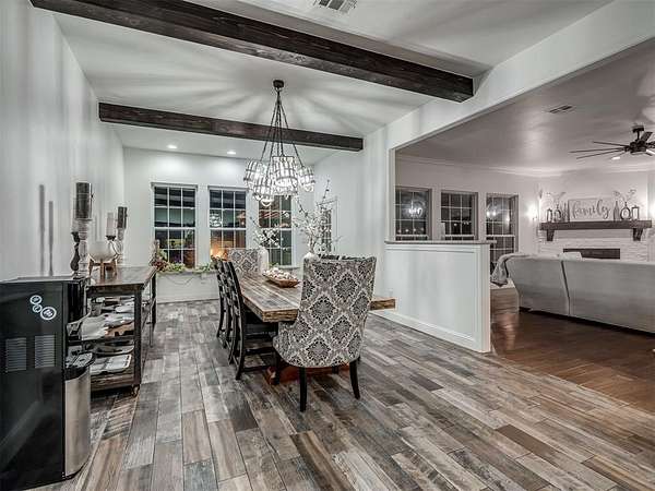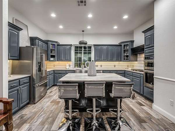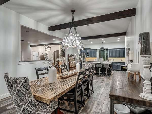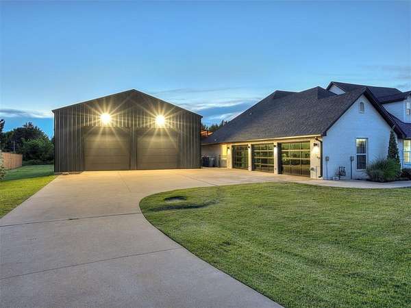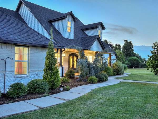 This stunning luxury estate sits on 1.89 meticulously maintained acres and offers an exceptional blend of elegance, comfort, and functionality. Inside, you'll find two living and two dining areas with rich updated hardwood flooring, crown molding, wood beam accents, a gas log fireplace, and fresh interior paint throughout, including walls and baseboards. The living room features a new ceiling fan, and all ceiling fans in the bedrooms have also been recently replaced. The beautifully remodeled upstairs bath adds a third full bathroom, and the powder bath has also been tastefully updated. The GORGEOUS kitchen is a chef's dream--featuring leather-textured granite countertops, subway tile backsplash, updated flooring, a spacious island, pantry, granite window sills, a farmhouse sink, six-burner stove, dual ovens, and premium KitchenAid appliances. Outdoors, unwind in your private oasis with a heated saltwater pool and grotto complete with a 12-14 person hot tub and 5 lounger tanning ledge, a massive covered patio with full kitchen capability, electric outdoor fireplace, anchored commercial grade lighting & surround system with 4 individual amps, and professionally manicured lawn bordered by mature trees. The exterior boasts a custom-finished front porch with bead board ceiling, large circular drive, striking new iron front door, new exterior lighting, and most impressively--a brand-new roof and gutters. A 40'x40' 2"closed cell spray foam insulated shop provides high functionality & wired for HVAC, a 10'x10' third bay door, a Wi-Fi-enabled two 12'x12' insulated black garage doors. 10'x10' in-ground storm shelter with hydraulic door located in the 3 car garage. With extensive outdoor camera coverage and built-in sound throughout, this home seamlessly blends luxury and peace of mind. 3 car garage overhead tinted glass garage doors. Newcastle Schools. Buyer to verify all information.