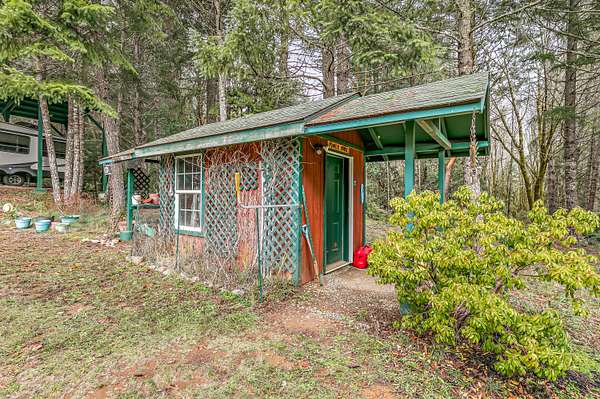 Nestled on 80 private acres along the scenic Redwood Highway, this unique 2-bedroom, 2.5-bath property offers a rare blend of space, views, and rustic charm. The home features a cozy cabin-style feel with a distinctive, artistic design, an open loft that adds character and flexible living space, and is fully off the grid for a truly self-sufficient lifestyle. Enjoy peaceful mornings overlooking your own pond, surrounded by beautiful forested landscapes, three forest views, and expansive territorial scenery. A detached 2-car garage and covered RV parking provide ample space for vehicles, storage, or outdoor toys. With abundant room to roam, garden, explore, or unplug, the land offers endless potential. This special property delivers privacy, tranquility, and a strong connection to nature while showcasing stunning views and a one-of-a-kind setting in Southern Oregon's countryside. Ideal for full-time living or a private getaway with year-round enjoyment. Open skies and wildlife. Await.!