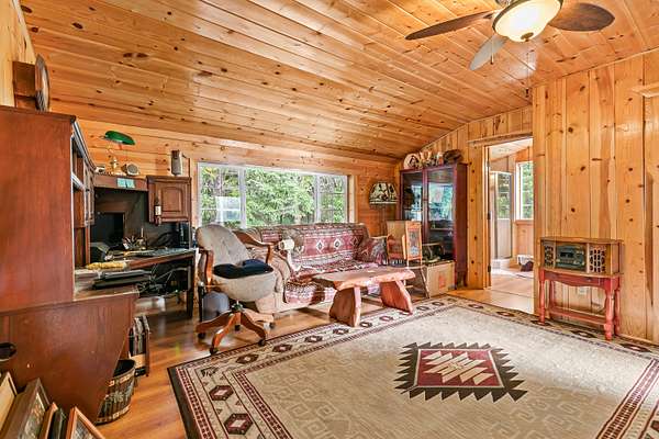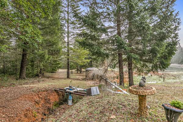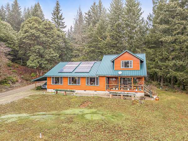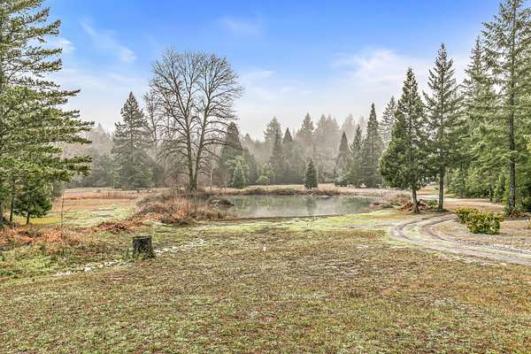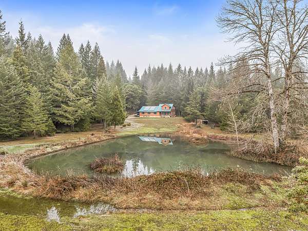 Nestled on 80 private acres along the scenic Redwood Highway, this unique 2-bedroom, 2.5-bath property offers a rare blend of space, views, and rustic charm. The home features a cozy cabin-style feel with a distinctive, artistic design, an open loft that adds character and flexible living space, and is fully off the grid for a truly self-sufficient lifestyle. Enjoy peaceful mornings overlooking your own pond, surrounded by beautiful forested landscapes, three forest views, and expansive territorial scenery. A detached 2-car garage and covered RV parking provide ample space for vehicles, storage, or outdoor toys. With abundant room to roam, garden, explore, or unplug, the land offers endless potential. This special property delivers privacy, tranquility, and a strong connection to nature while showcasing stunning views and a one-of-a-kind setting in Southern Oregon's countryside. Ideal for full-time living or a private getaway with year-round enjoyment. Open skies and wildlife await.