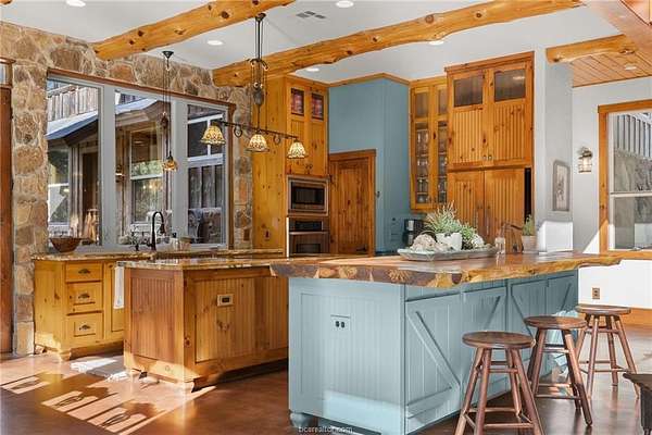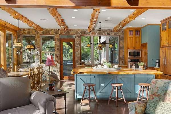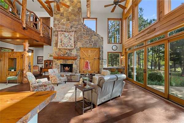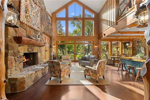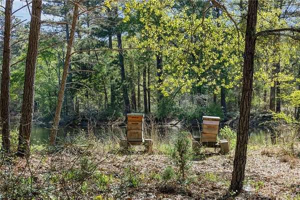 Set on a breathtaking 41-acre private nature preserve with a serene 2-acre lake, this 4,156 sq ft home offers refined living surrounded by nature. Featuring 3 bedrooms, 2.5 baths, and a fully equipped in-law suite, the home showcases wood beams, longleaf pine floors, a stone fireplace, and expansive windows in an open-concept design. The chef's kitchen with double islands anchors the living space, while the primary suite includes a private porch, outdoor shower, spa-like bath, and walk-in closet. Enjoy a sleeping porch, multiple patios, and an outdoor kitchen with covered living and dining areas, all connected to a potager-style garden for farm-to-table living. Explore cottage gardens, open clearings, and 1.5 miles of wooded trails, or unwind by the lake. Complete with chicken coop, orchard, and wildlife and timber exemptions, this property offers privacy, tranquility, and a true connection to the land.